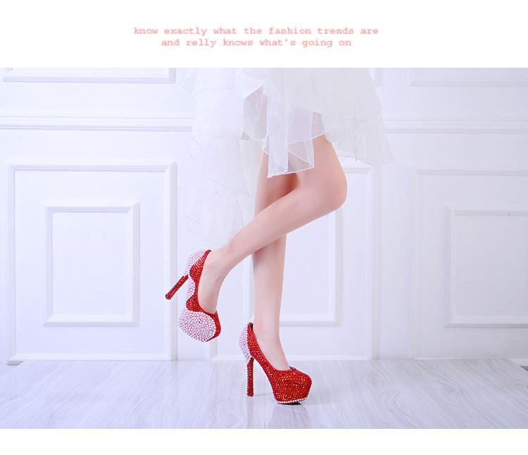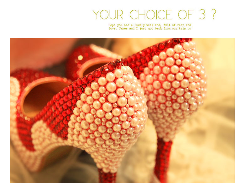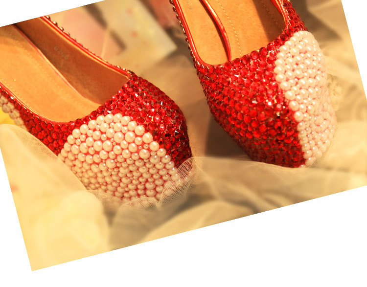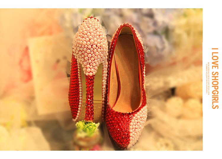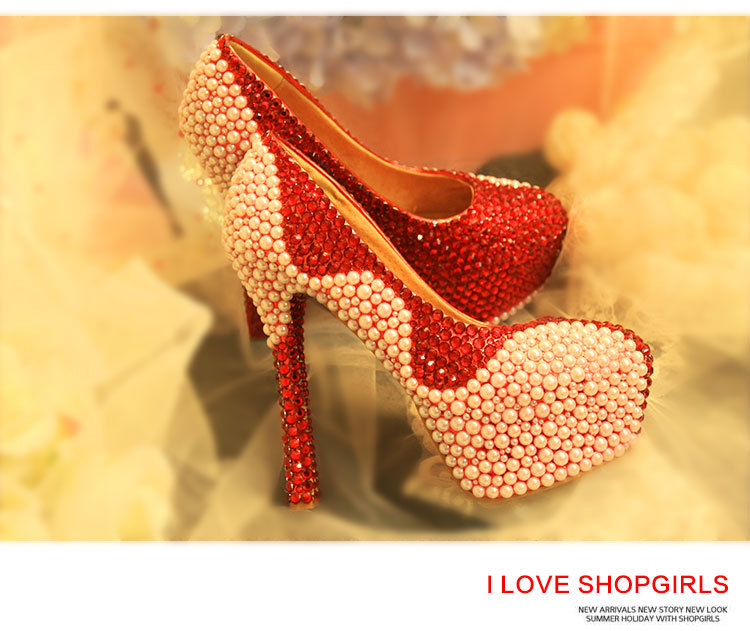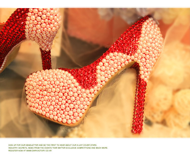 New Arrival Red crystal white pearl party dress shoes Women wedding Pumps platform shoes leather insole fashion shoes