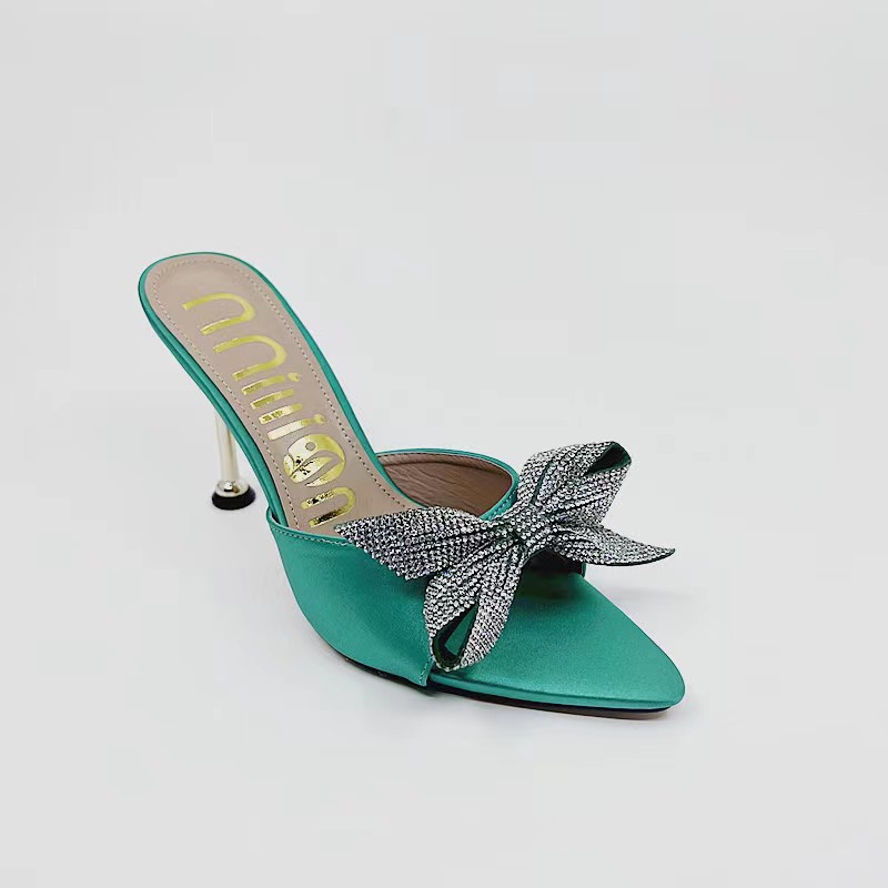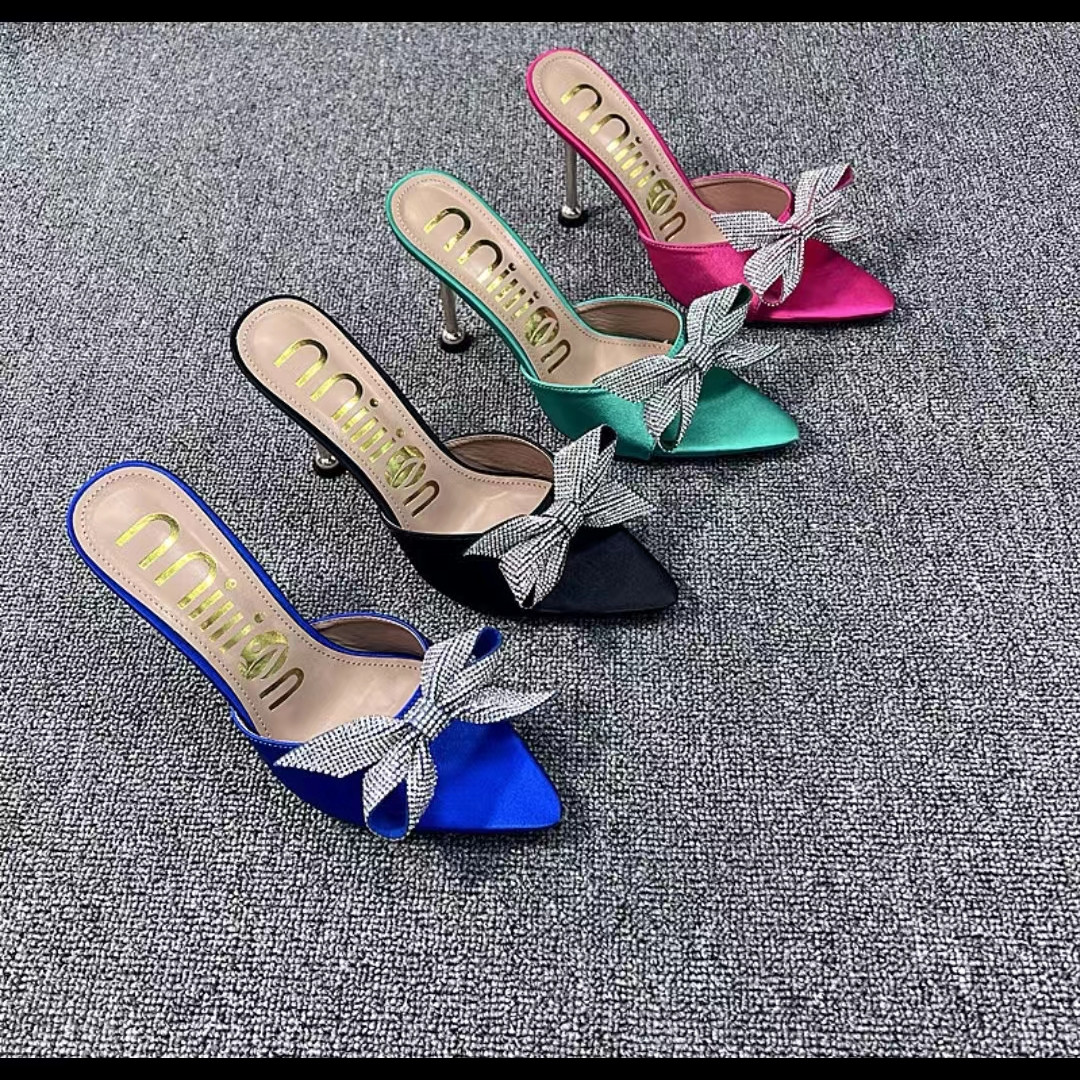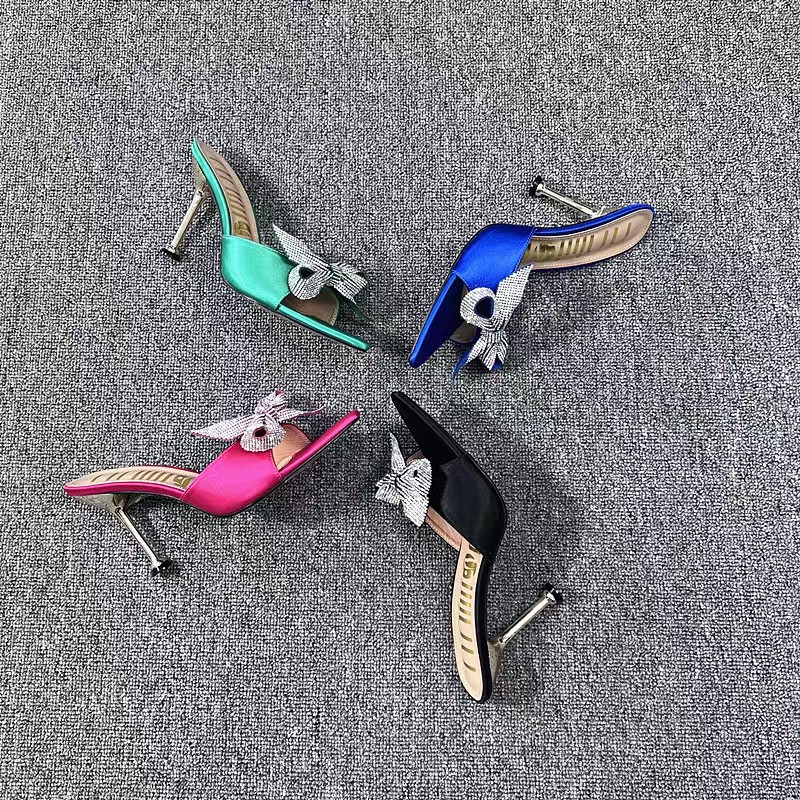 Fashion Butterfly-knot Women Slippers Pointed Toe Rhinestones Design Women's Slippers Summer 2022 Slides Woman Thin Heels Sexy