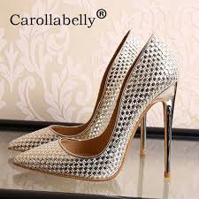 Shiny Silver Women D'Orsay High Heels Pointed Toe Sexy Ladies 12/10/8cm Heeled Party Shoes Wedding Bride Bridal Pumps