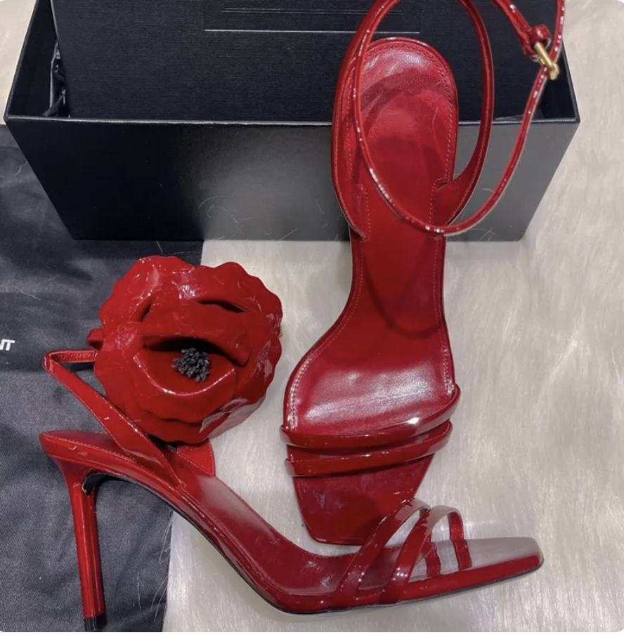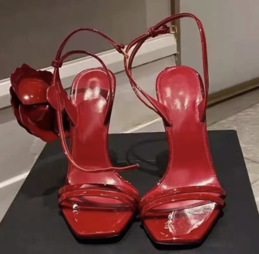 Floral Women's Sandals Square Toe Ankle Strap High Heels Stilettos