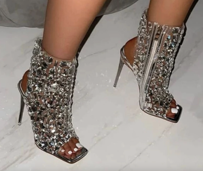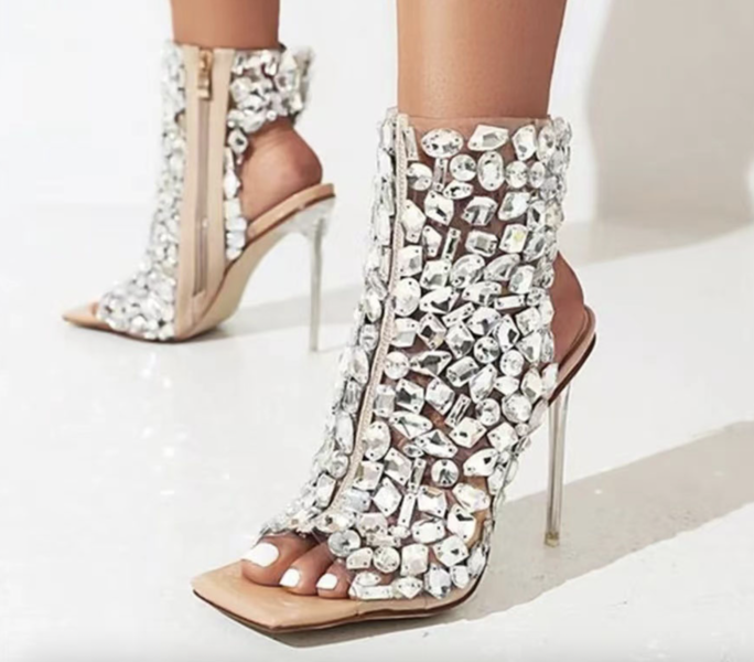 Custom Crystal Pointy Toe Heels Brown Crystals