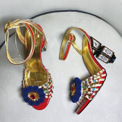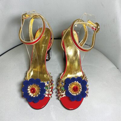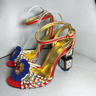 Printed Rhinestone High Heel Sandals
