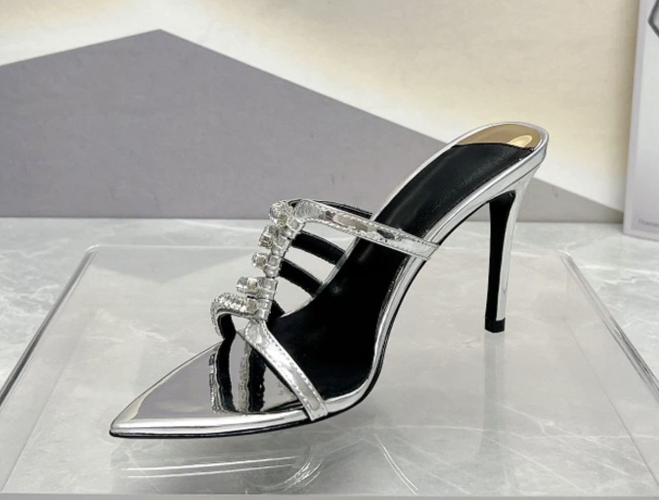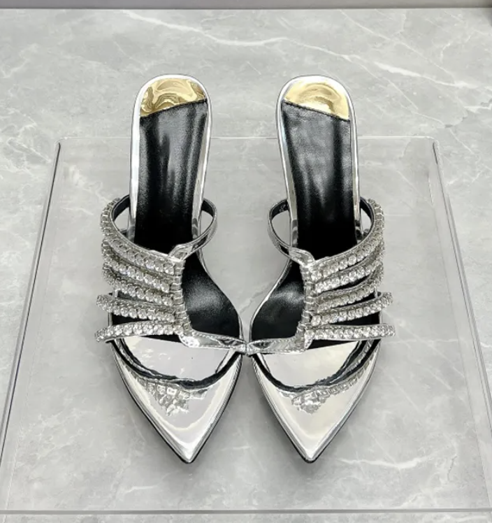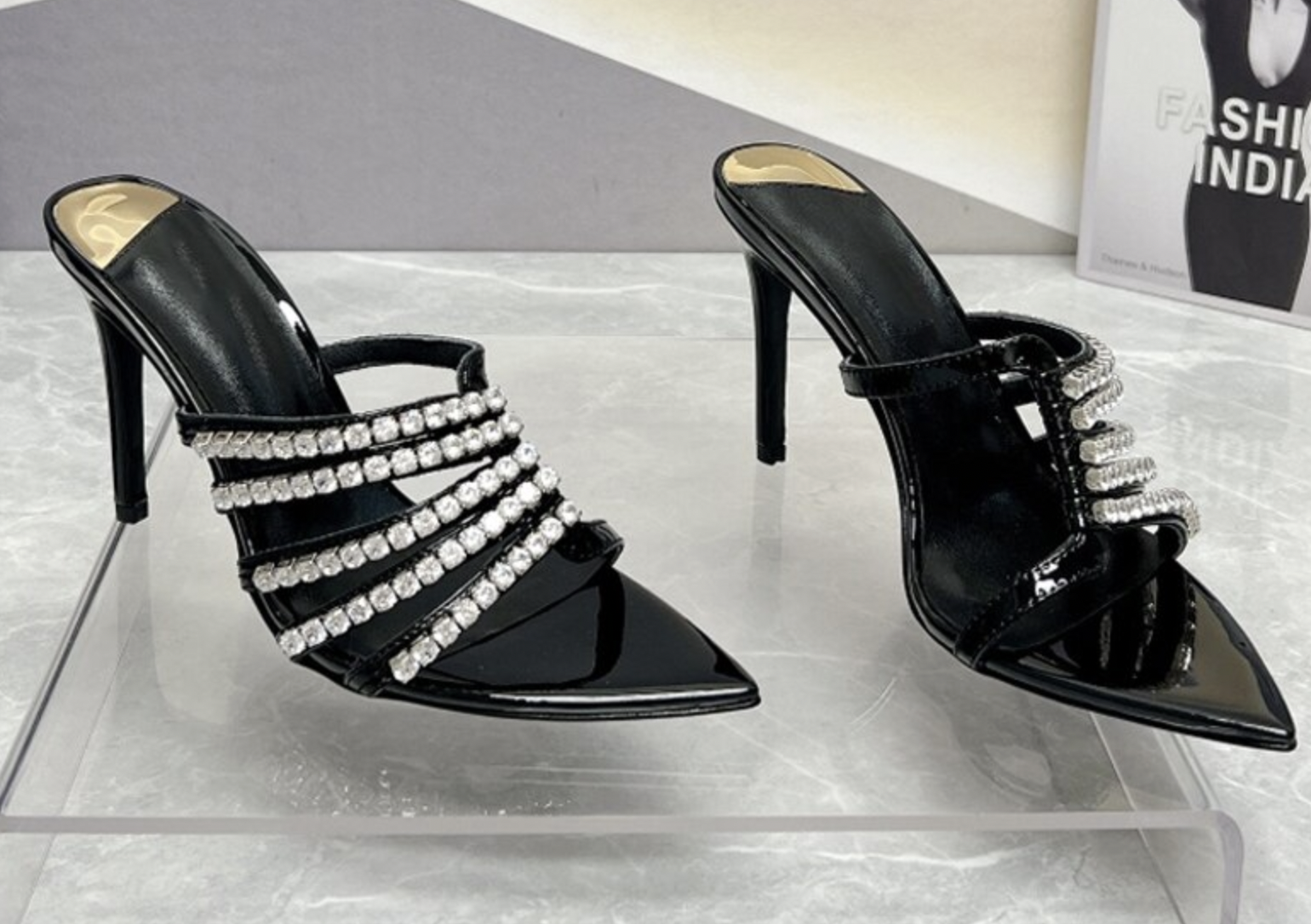 Rhinestone Open-Toed High Heel Wedding Crystal-embellished Strap Slip-on Style Genuine Leather Summer Party Stiletto Women Shoes