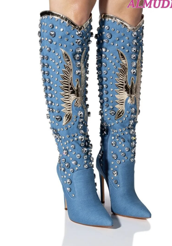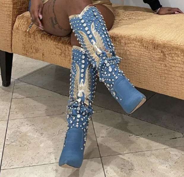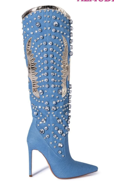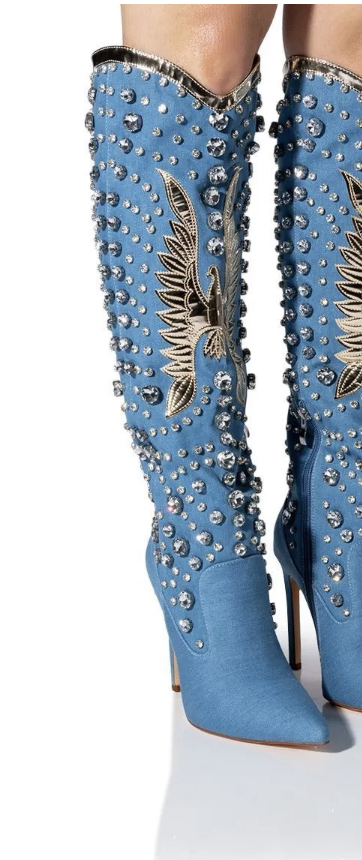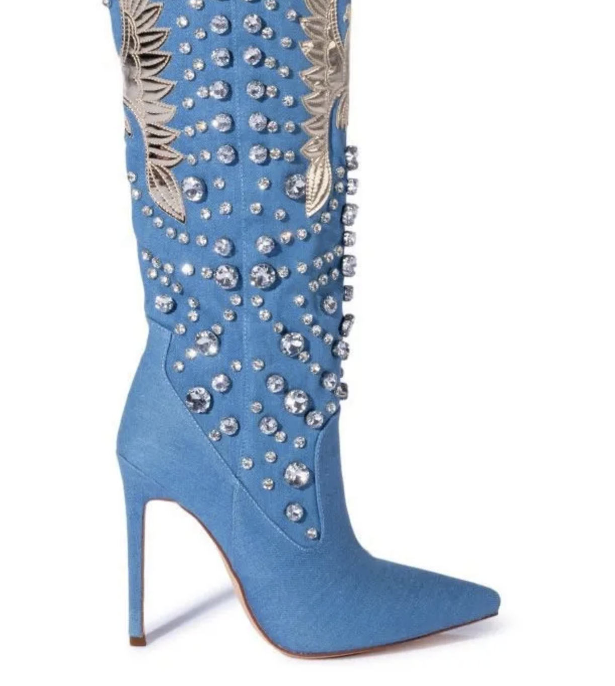 Cowboy Boots Blue Denim Pointed Toe please measure your feet.