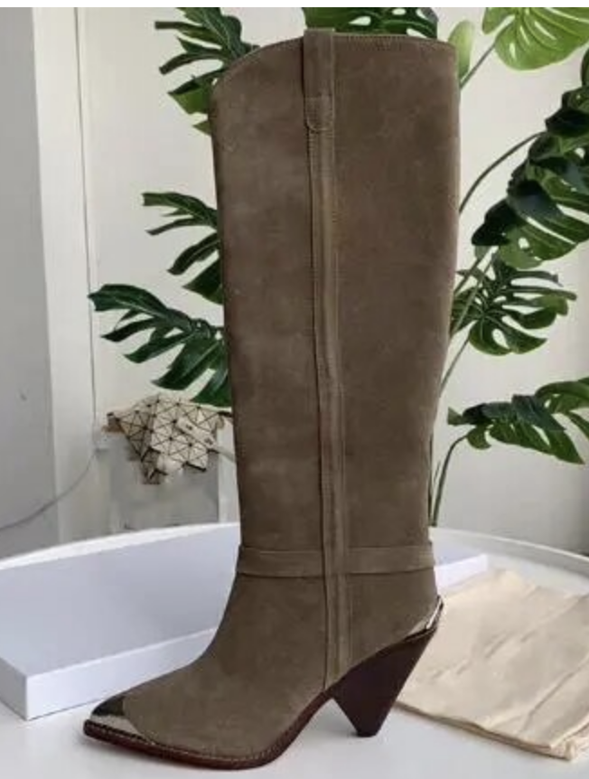 metal studded pointed toe Knee High Boots