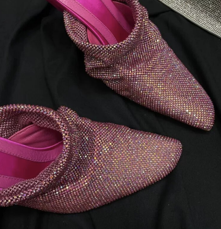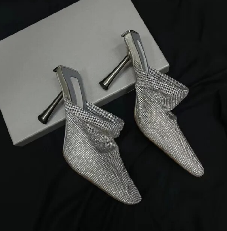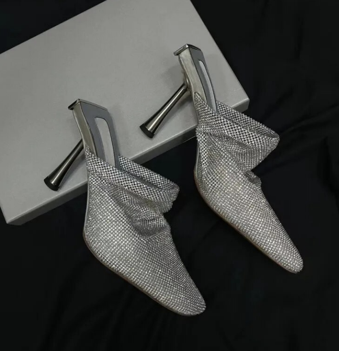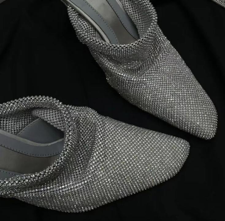 Mesh Crystal Pointy toe Heels