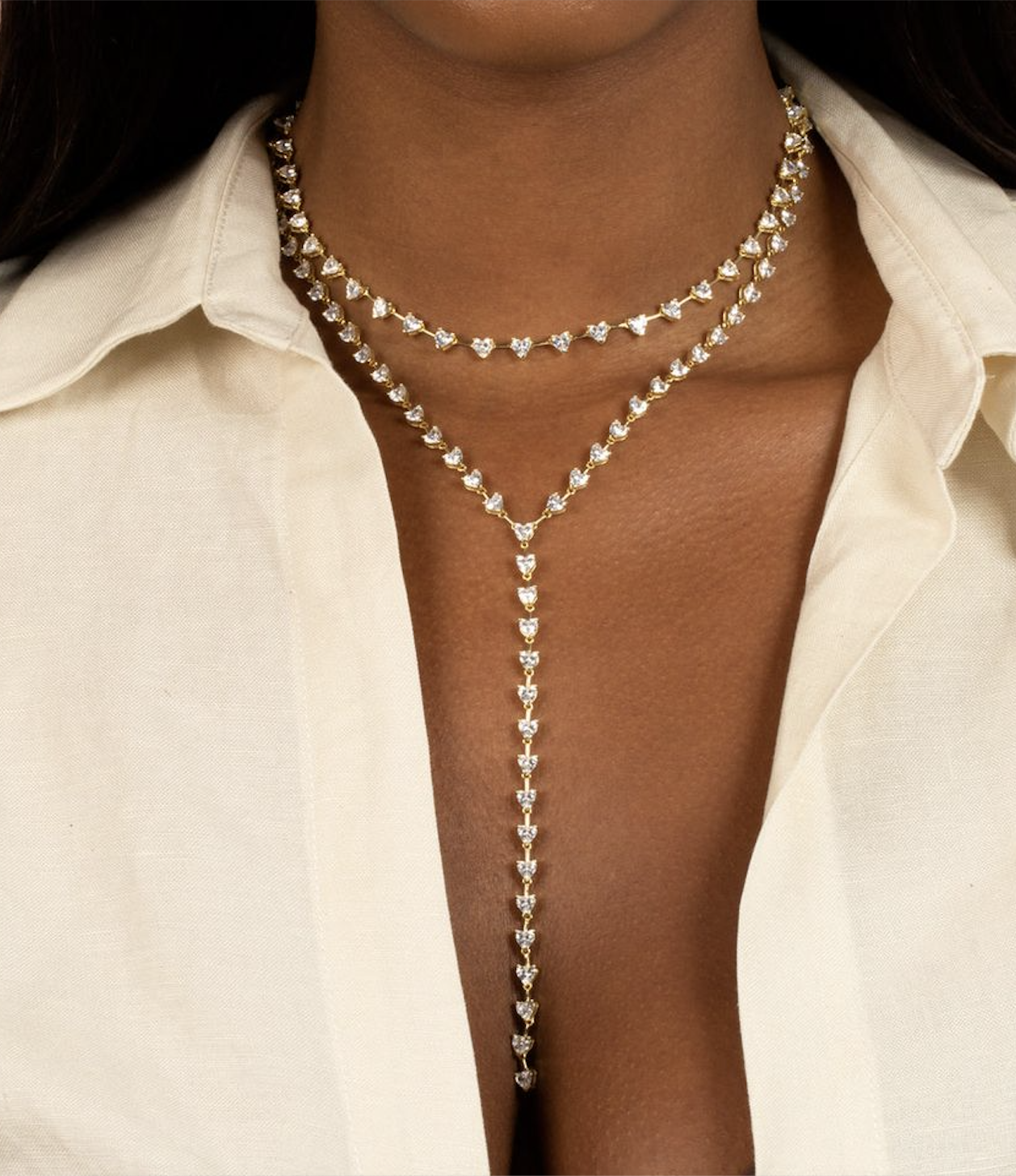 High Quality Bling 5A Heart Shaped CZ Tennis Chain Choker Y Lariat Necklace