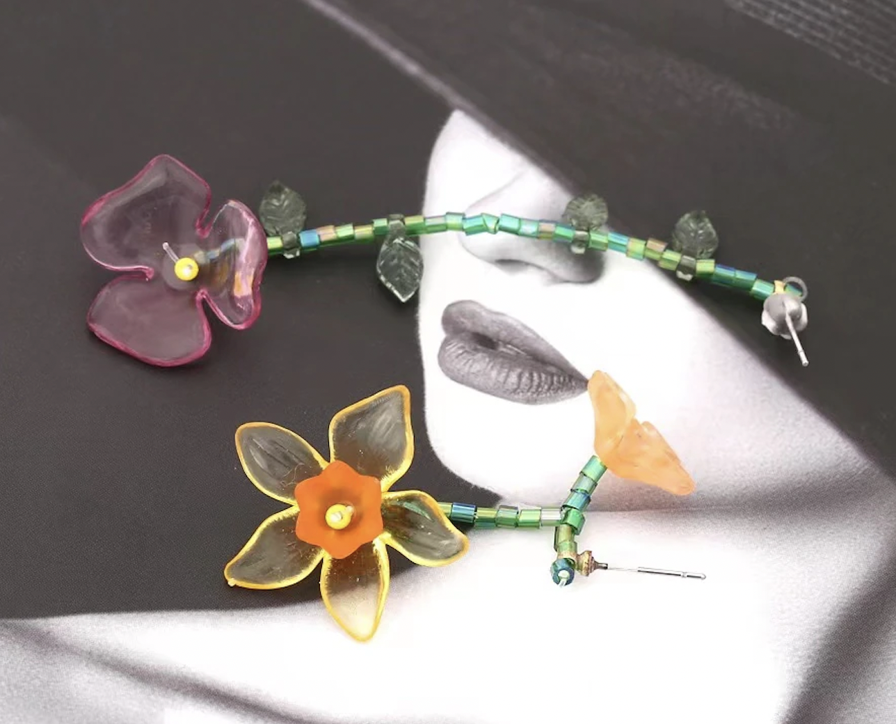 Resin Clear Pearl Star or Heart Earrings Oversized