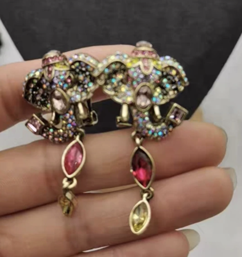 Retro Zircon Elephant Statement Necklace and Earrings Set or seperates