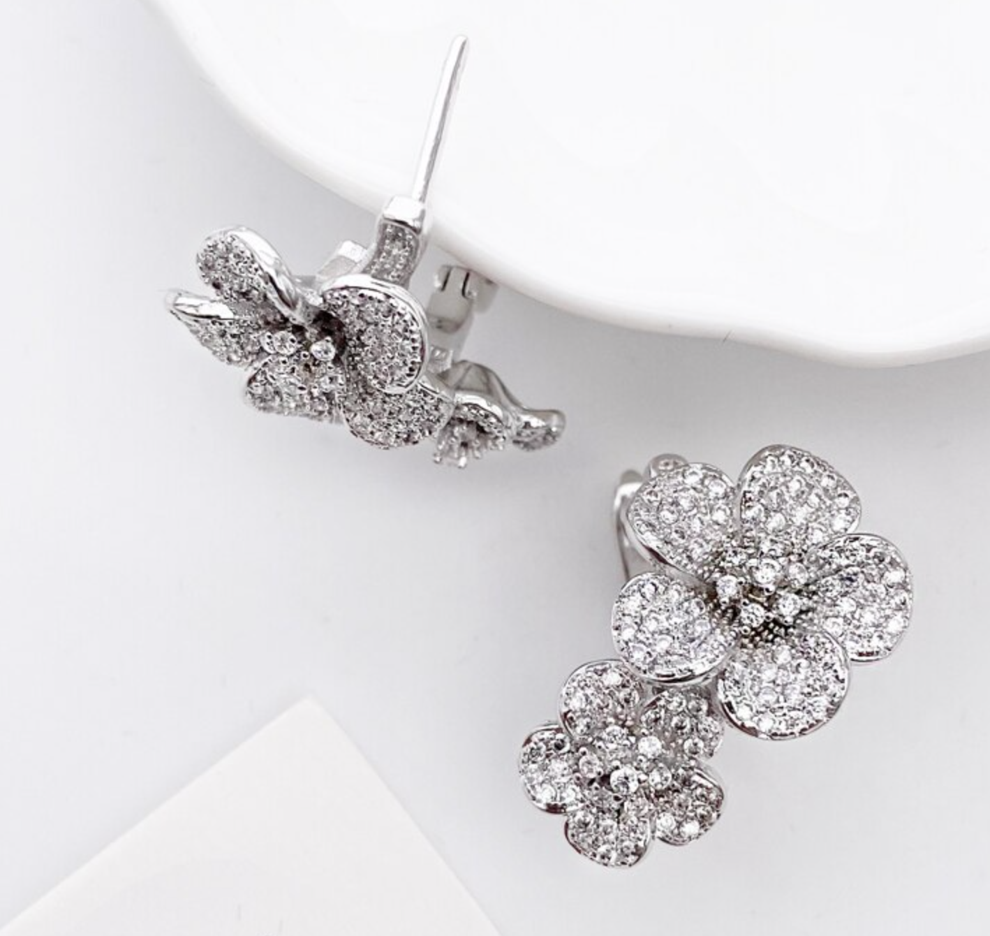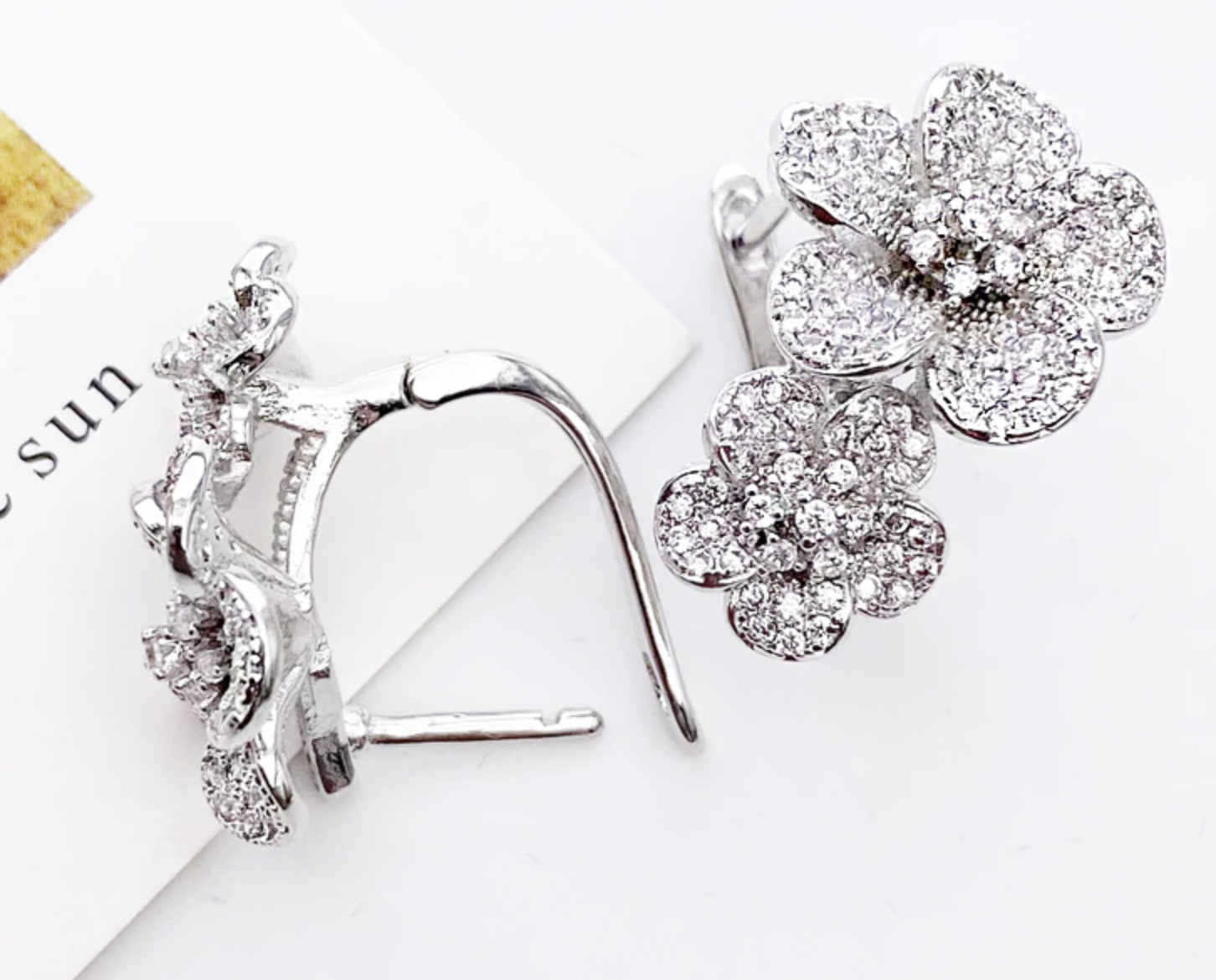 Twin Flower Ear Clip Micro Pave Zircon earrings