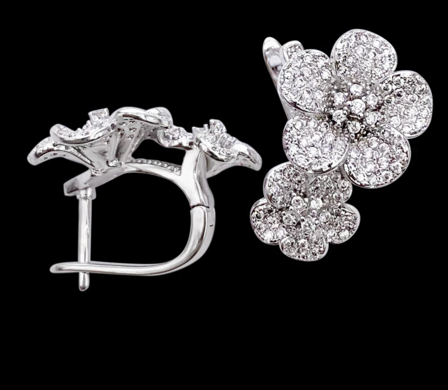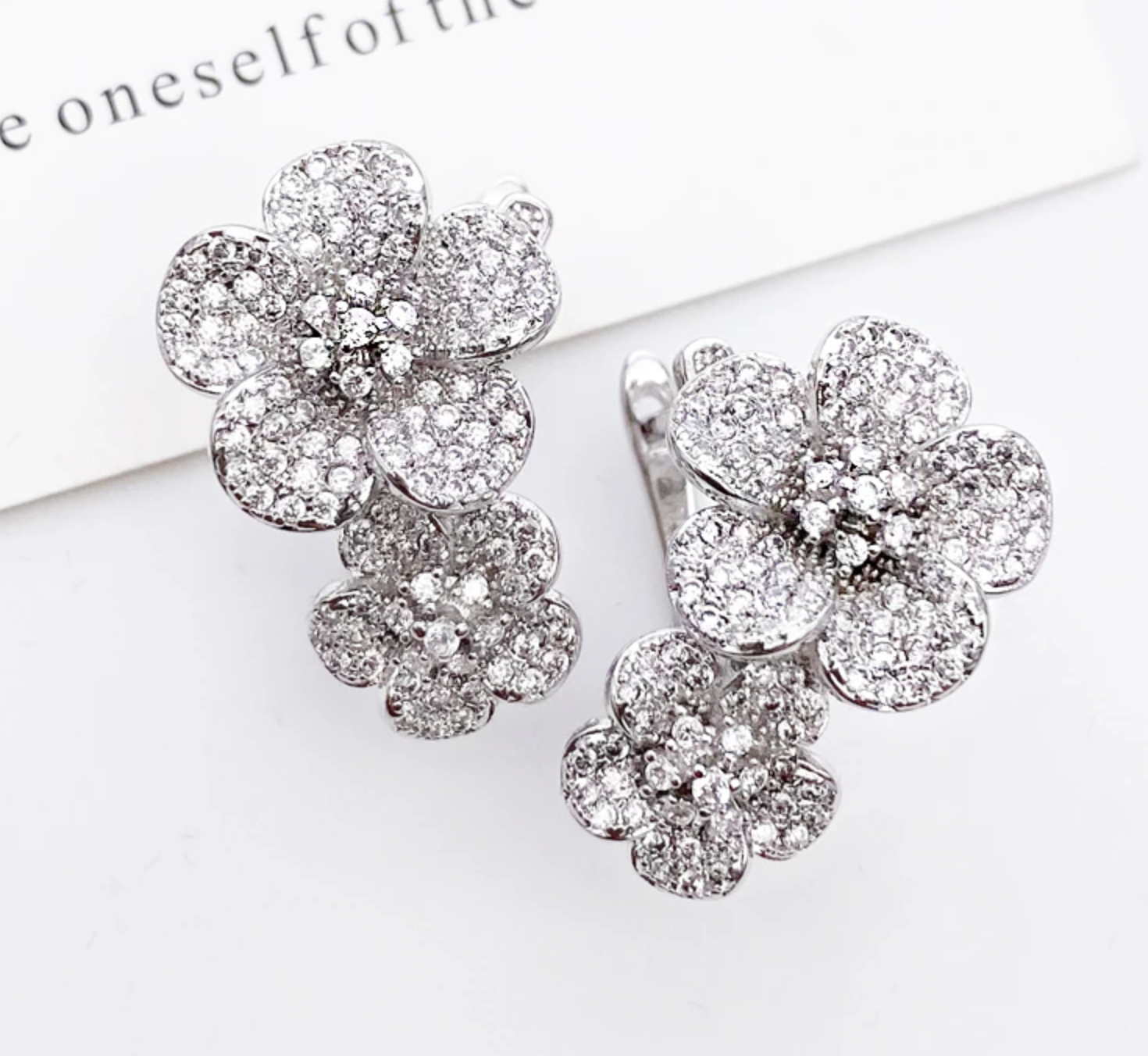 Twin Flower Ear Clip Micro Pave Zircon Earrings