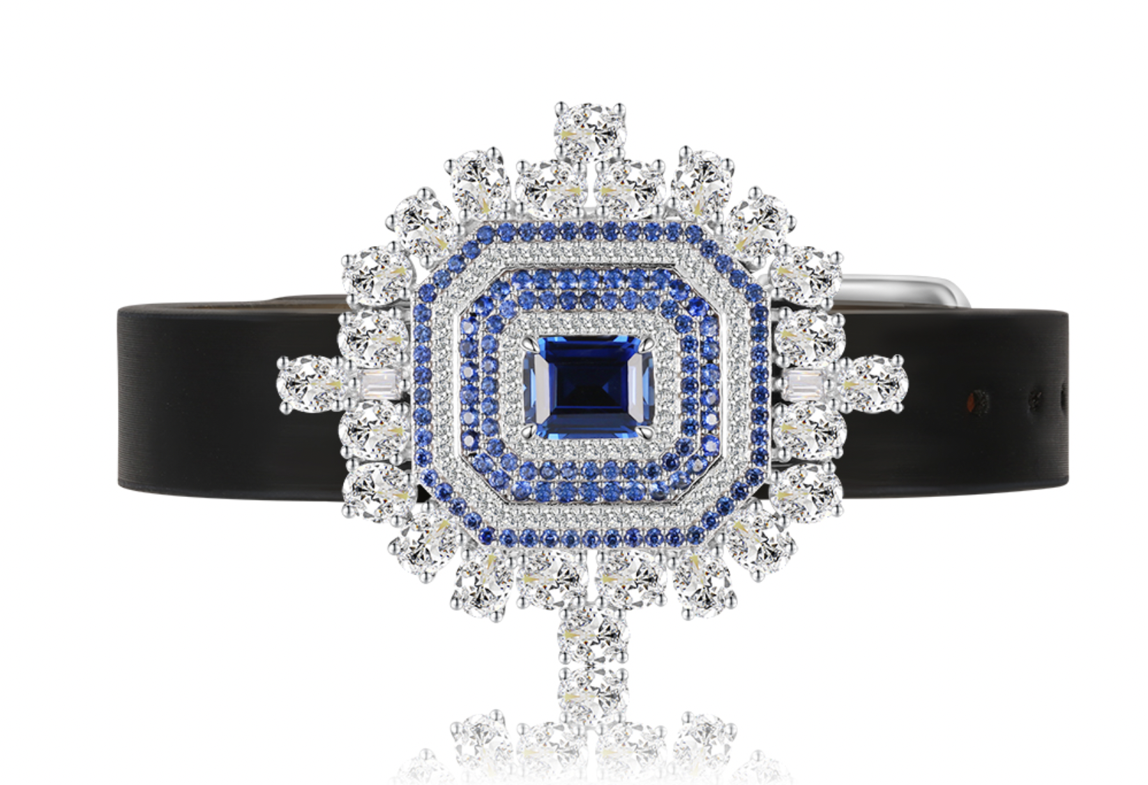 925 Sterling Silver Lab Sapphire Emerald Ruby Gemstone Cowhide Belt Bracelets Bangle