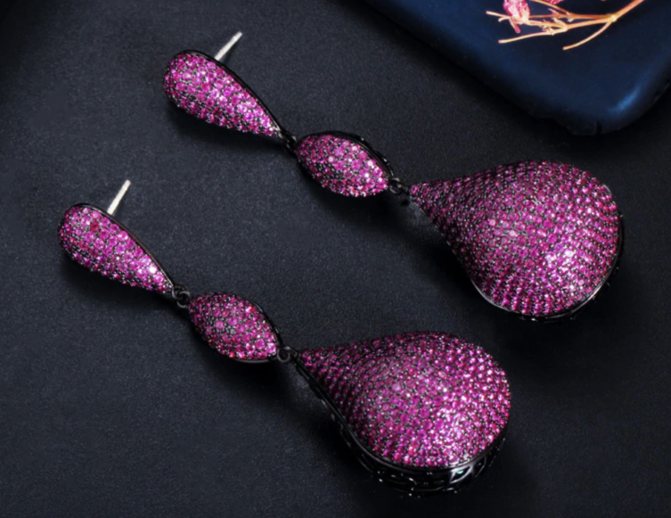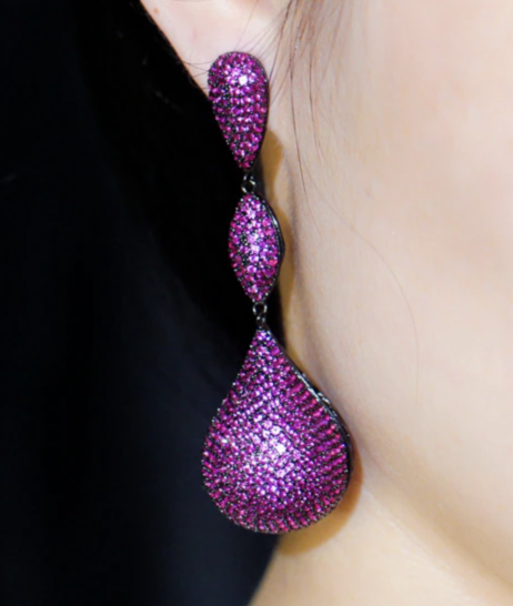 Luxury Big Water Drop Disco Balls Micro Pave Hot Pink Red Cubic Zircon Long Earrings