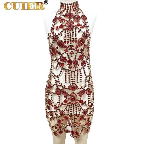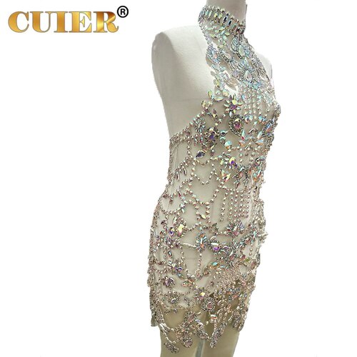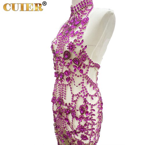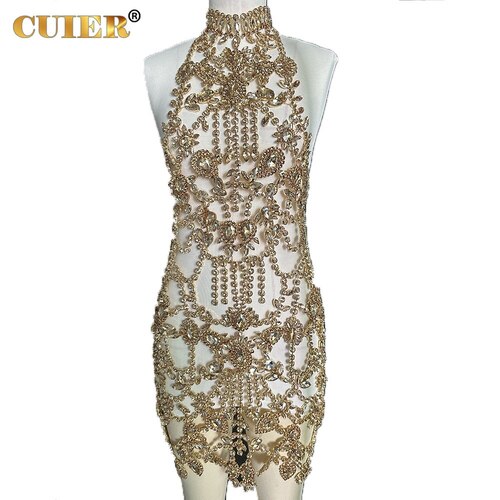 Amazing Handmade Long Dress for Women Sparkly Glass Crystal Rhinestone Body Jewelry