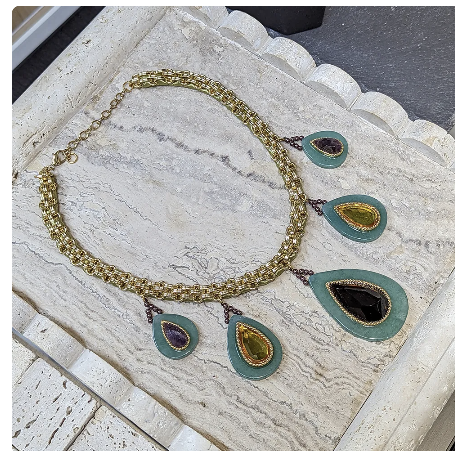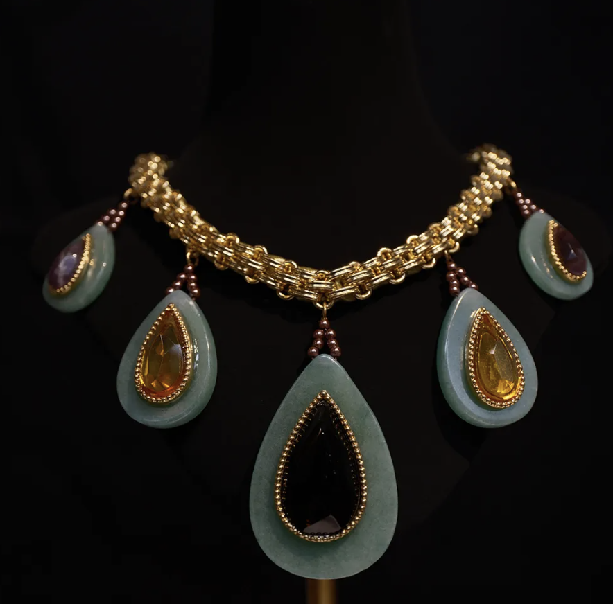 retro heavy industry woven Cuba thick chain natural stone water drop malachite green luxury necklace