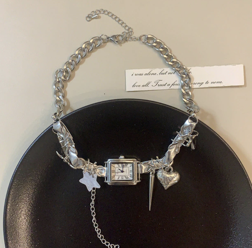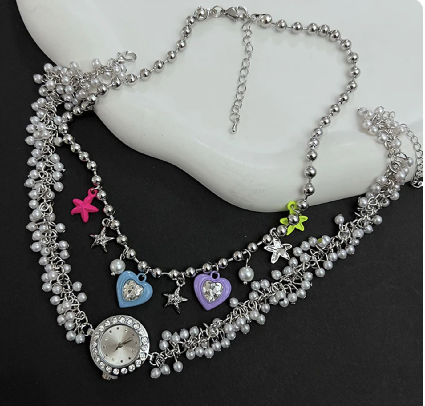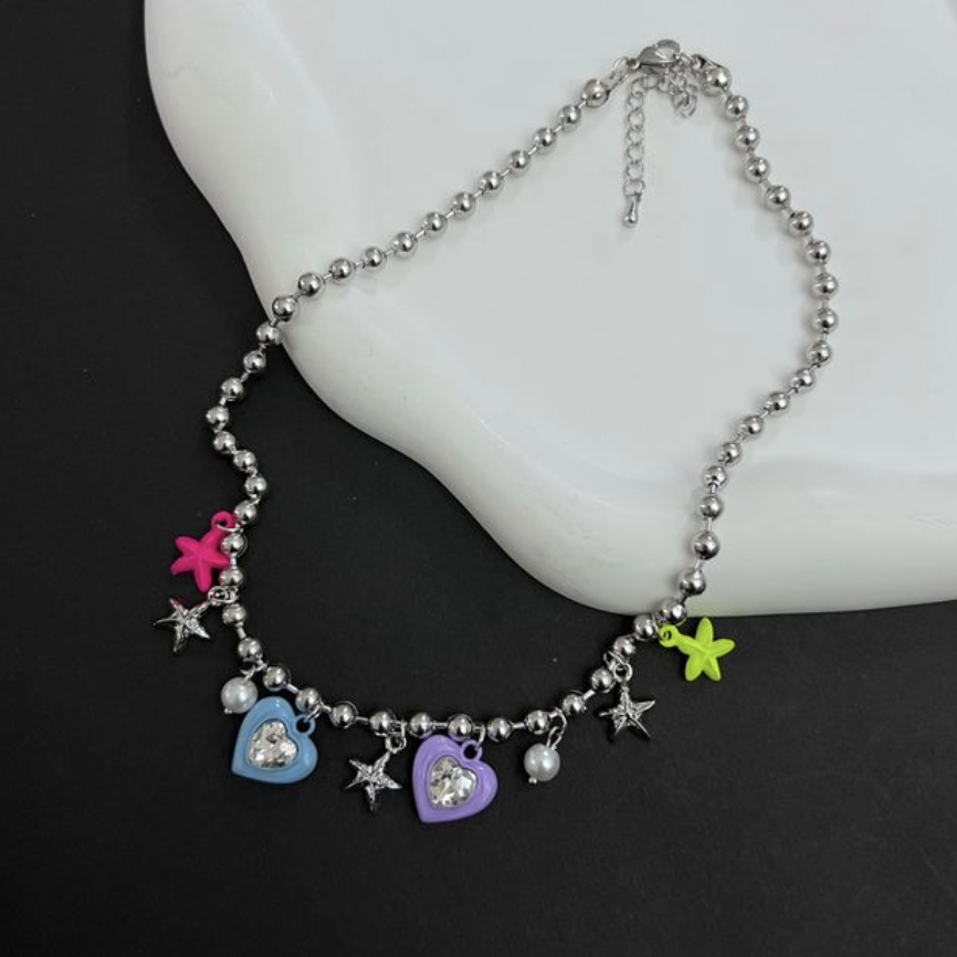Pearl Dial Zircon Necklace Y2K Coloured Star Choker