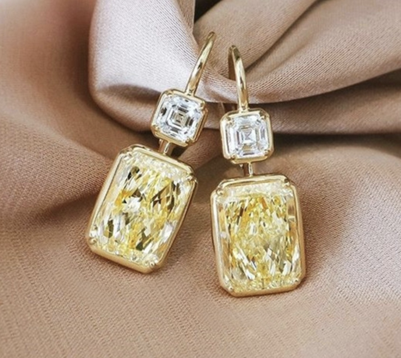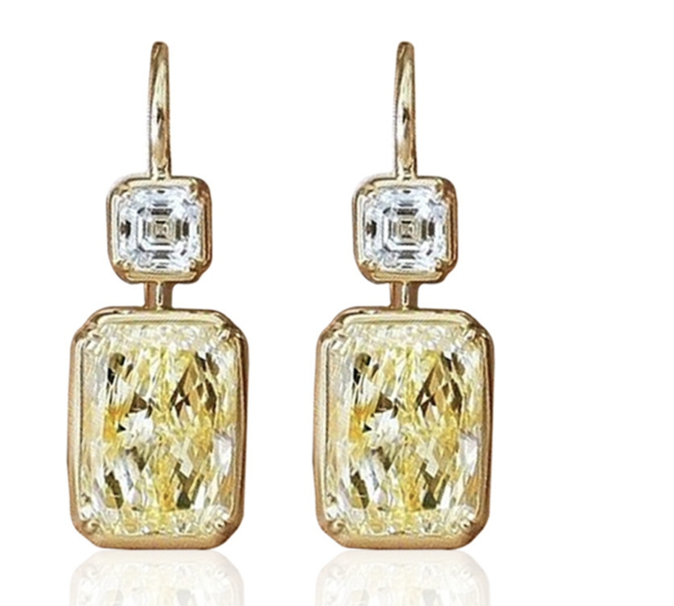Yellow Square Cubic Zirconia Dangle Earrings