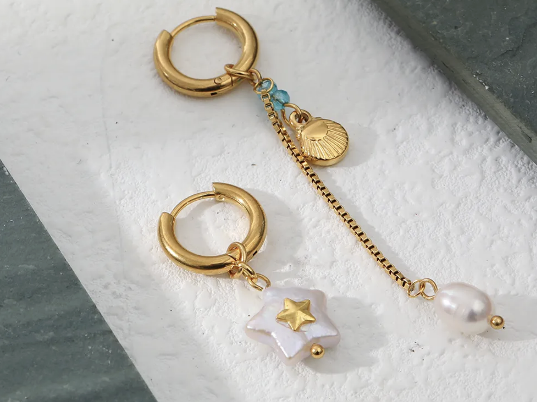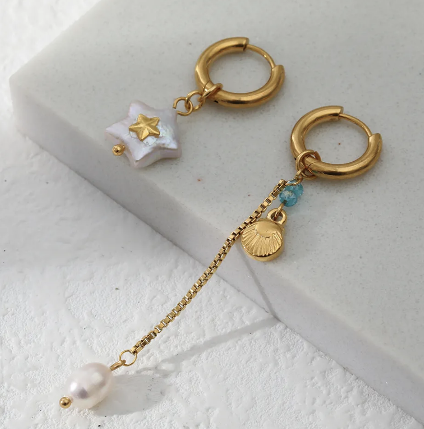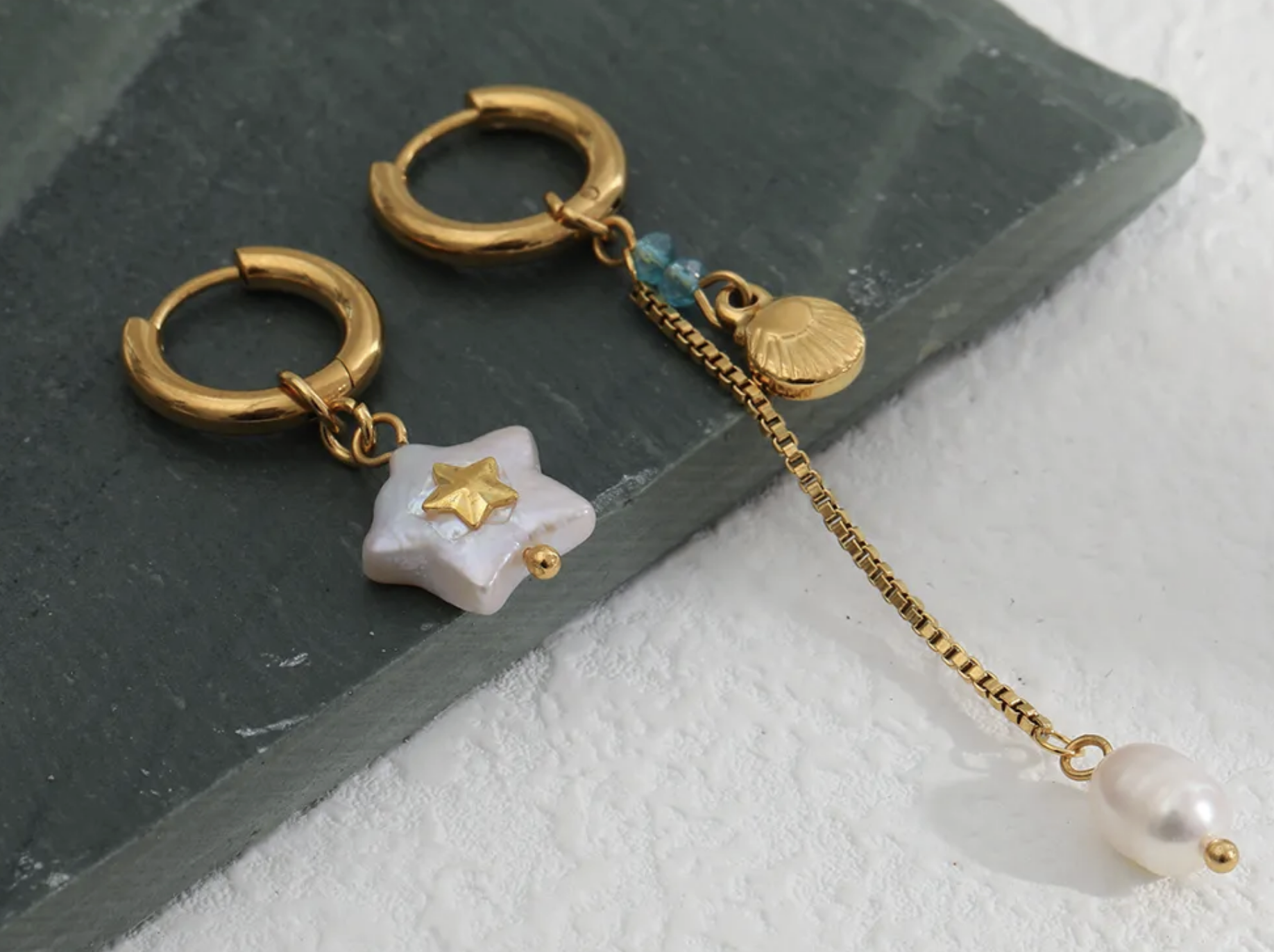 Freshwater Pearl Stainless Steel Women's Drop Earrings Gold Plated