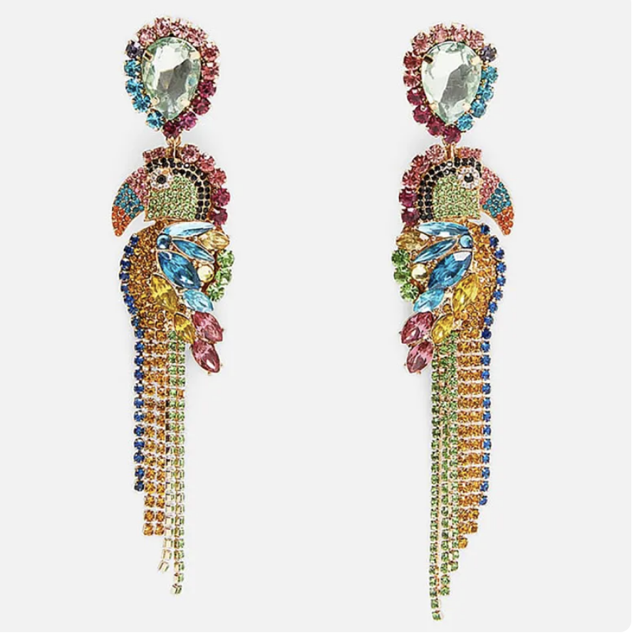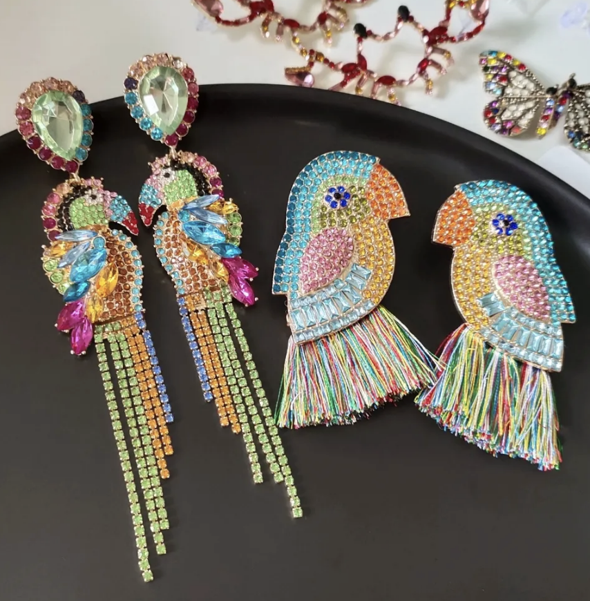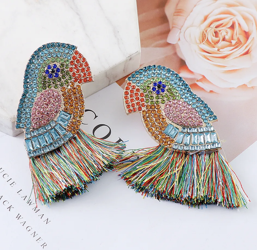 Colorful Crystal Birds Fringed Drop Dangle Earrings