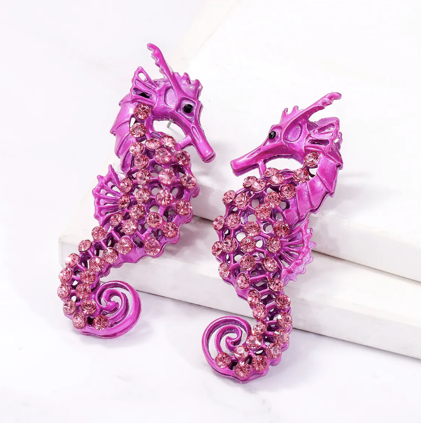 Purple Seahorse Earring
