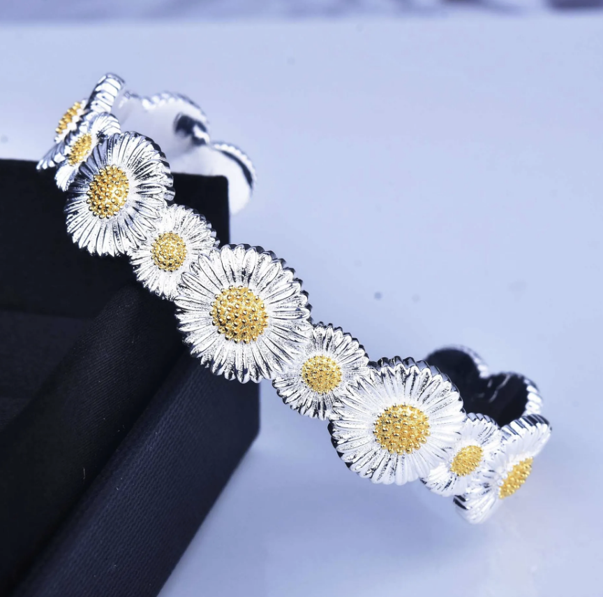 Italian Retro Jewelry daisy Silver Bracelets Bangles