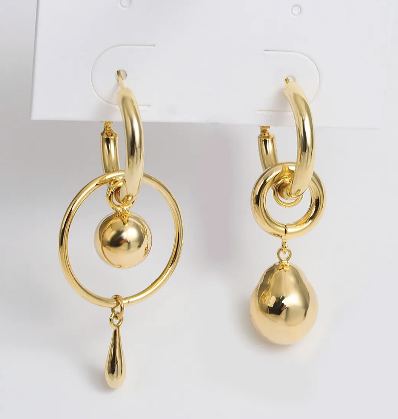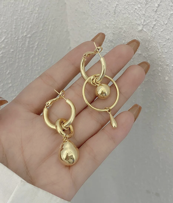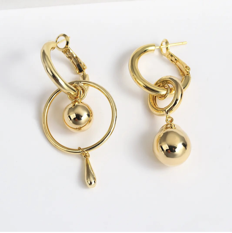 Metallic Asymmetry Gold Color Circle Ball Drop Dangle Earrings