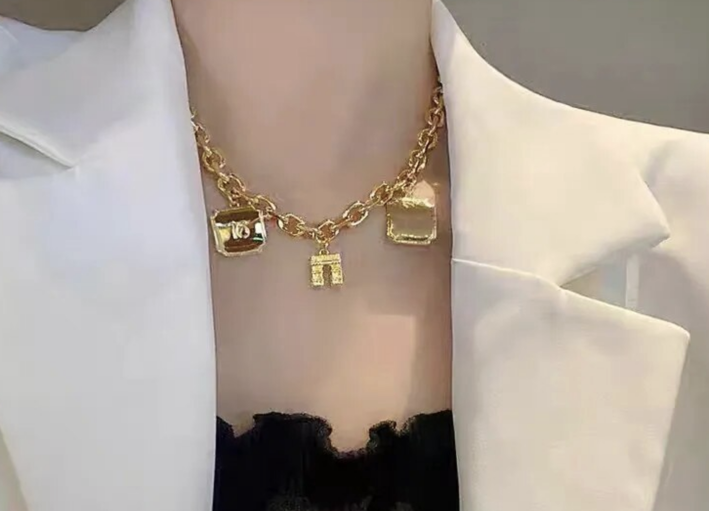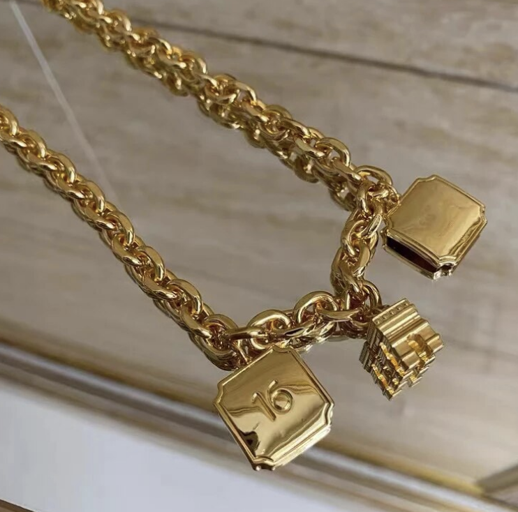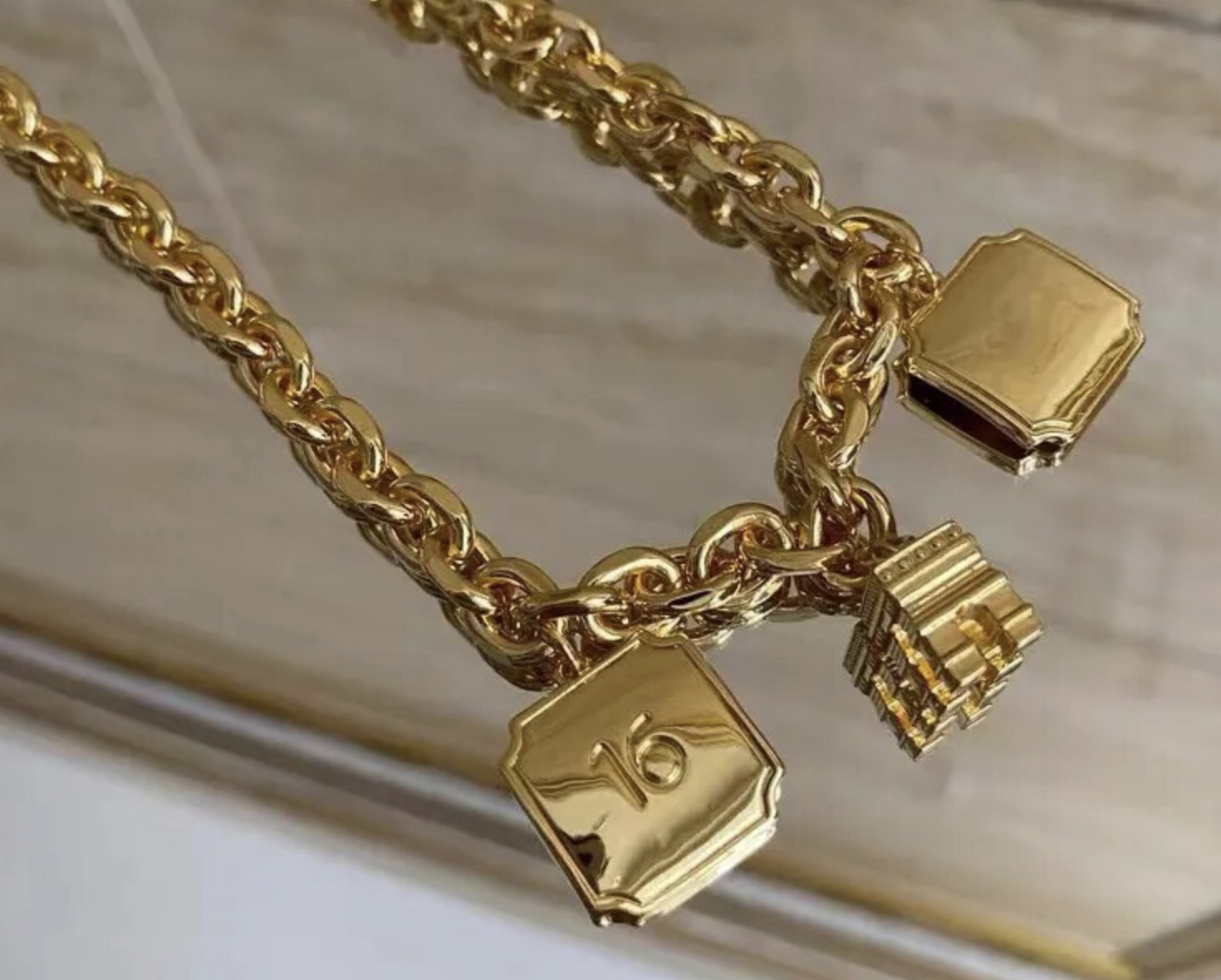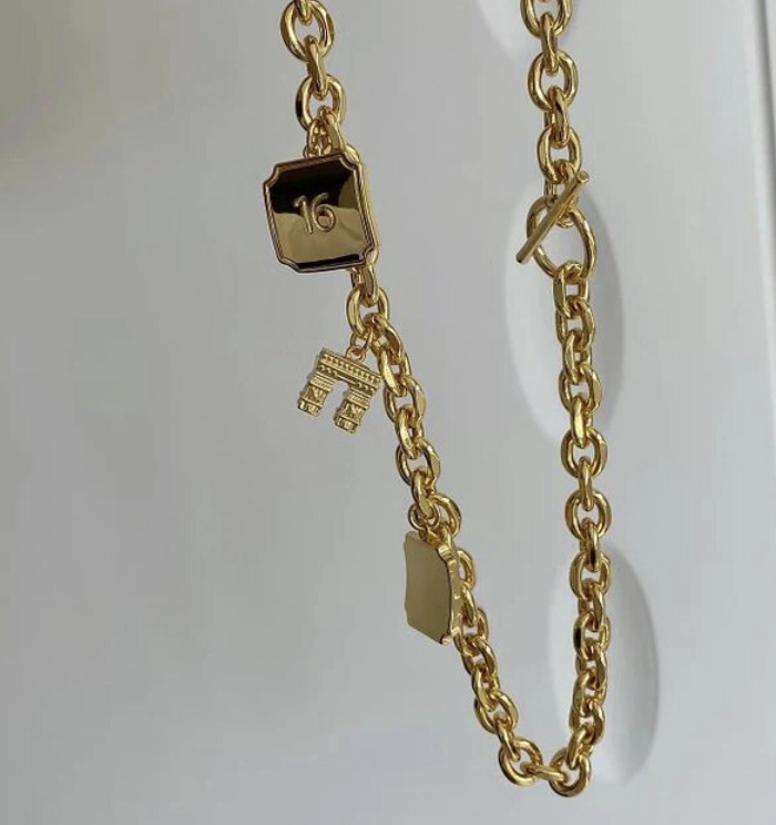 French Style Goldtone charm necklace 16