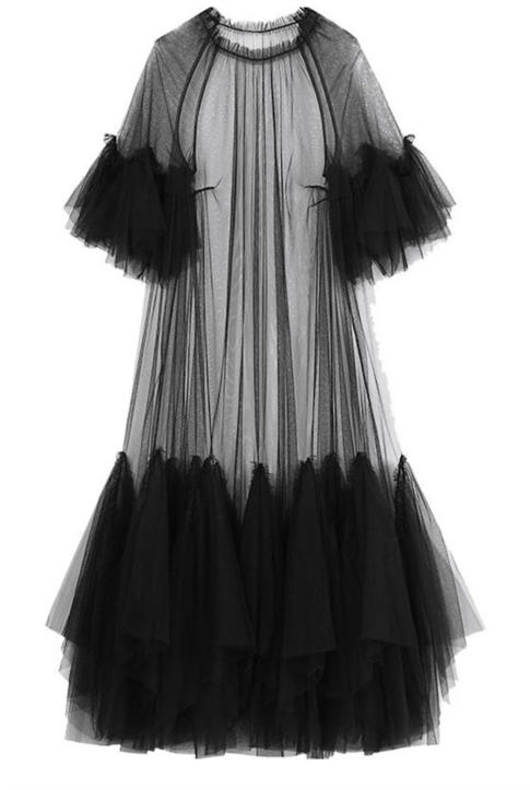 Black Ruffles Long Big Size Dress New Round Neck Three-quarter Sleeve robe