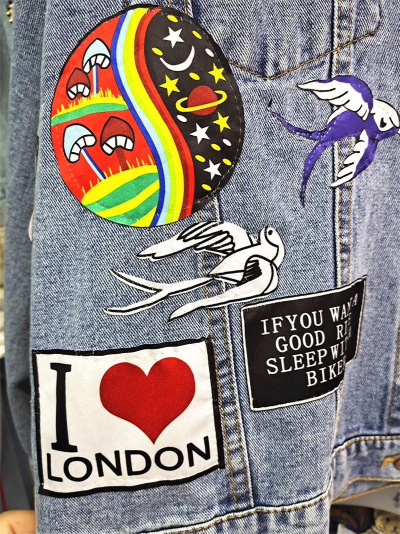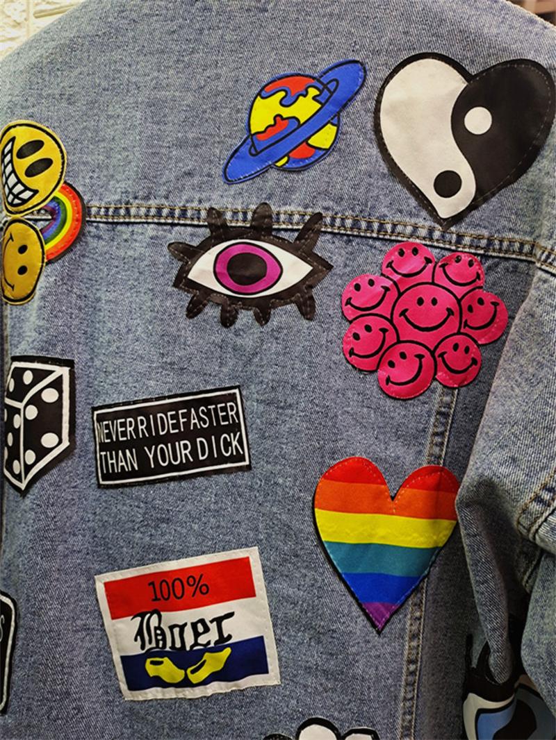 Punk Cartoon Personality Patch Washed Denim Jacket