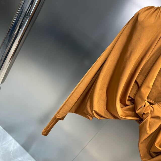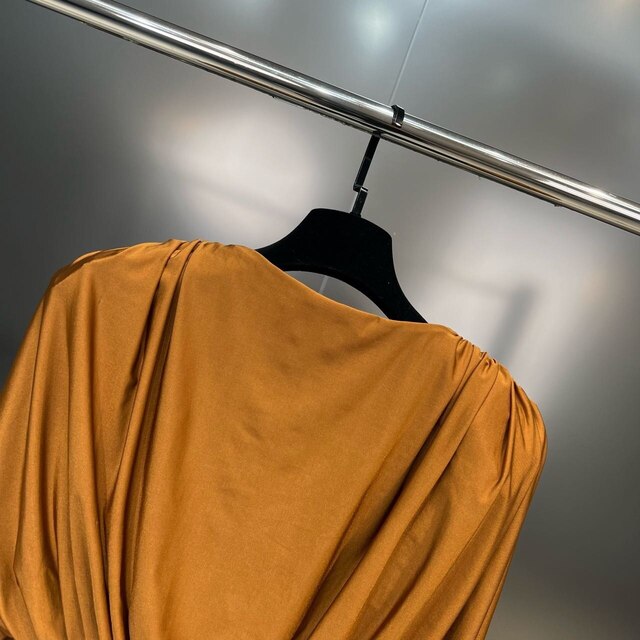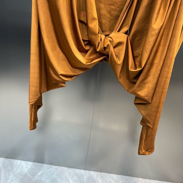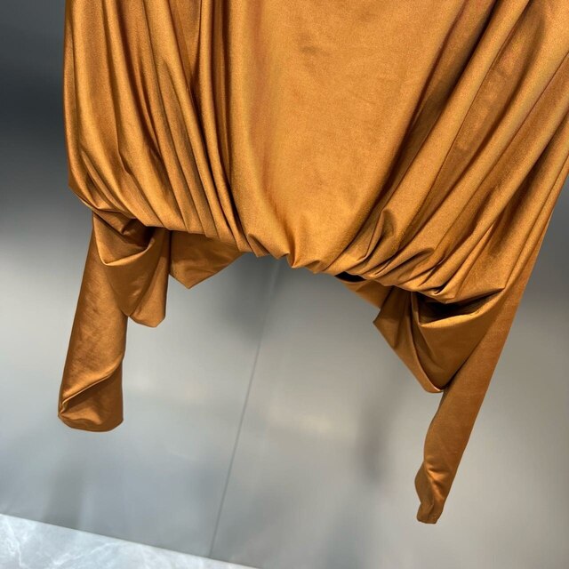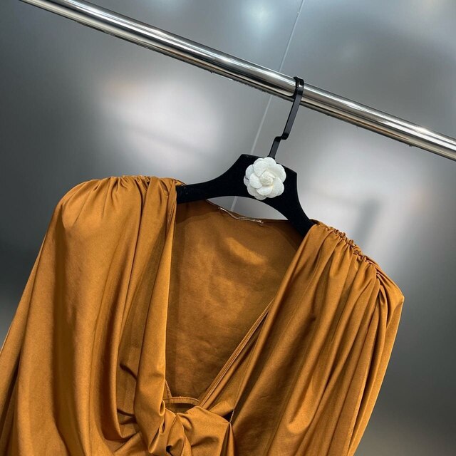 New Pleated Shirt Solid Color V Neck Long Sleeve
