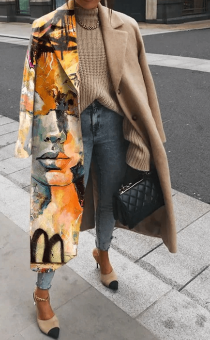 Casual Lapel Long Sleeve Blend Wool Coats Fashion Portrait