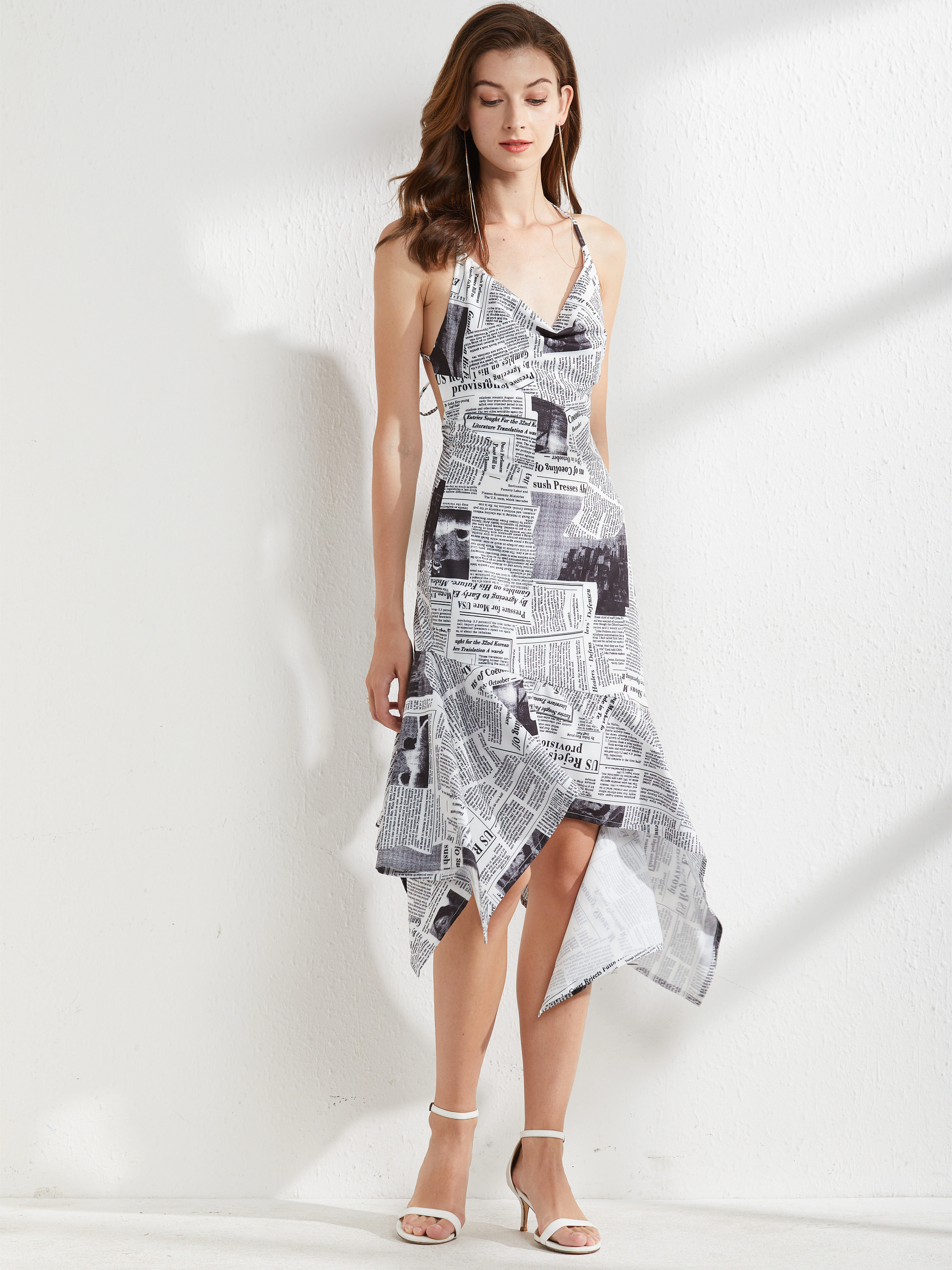 Style Mini Skinny Dress Slim Newspaper Pattern