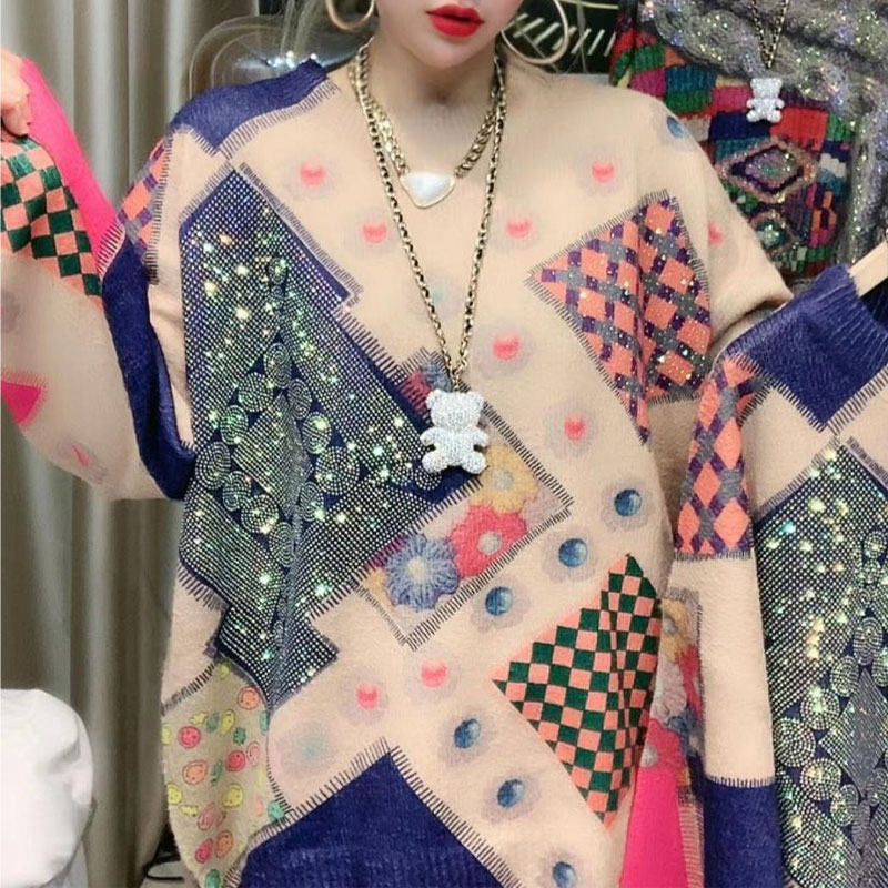 Plaid Printed Vintage Pullovers ONE SIZE UP TO 200LBS