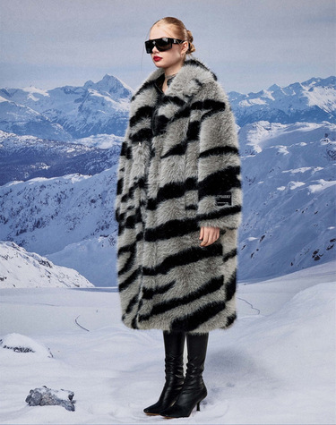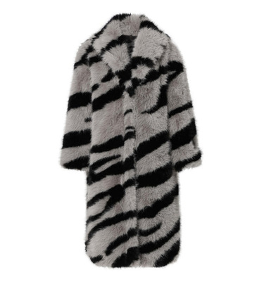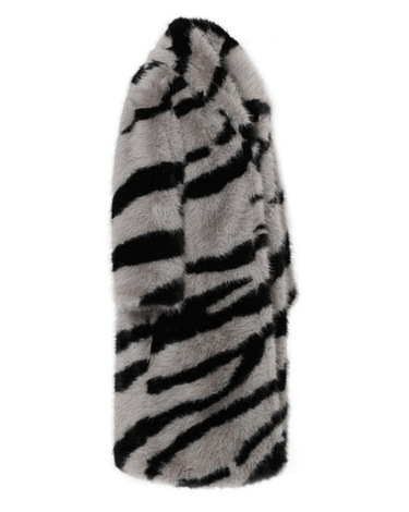 Zebra Long Faux Fur Coat