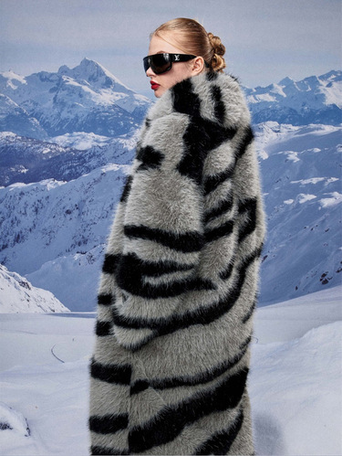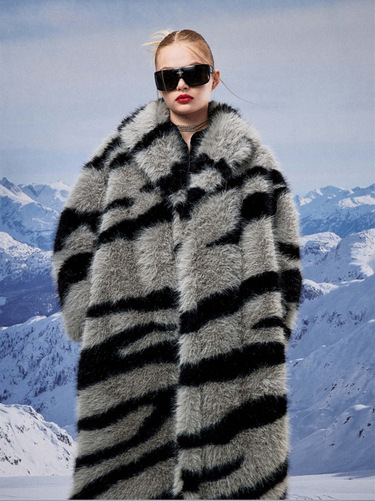 Zebra Long Faux Fur Coat please contact us for sizing information