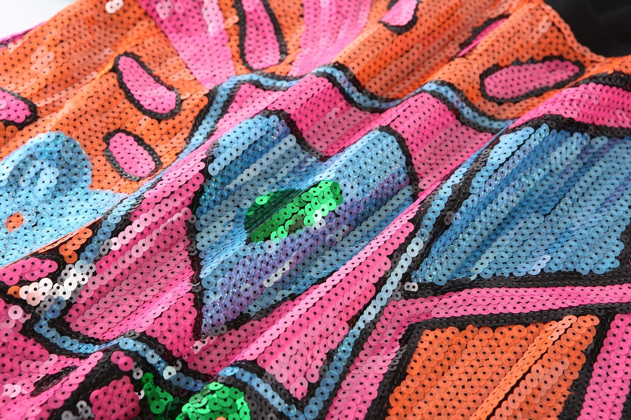 Vintage Ruffle Mesh Sequins Streetwer Knitted Sweater