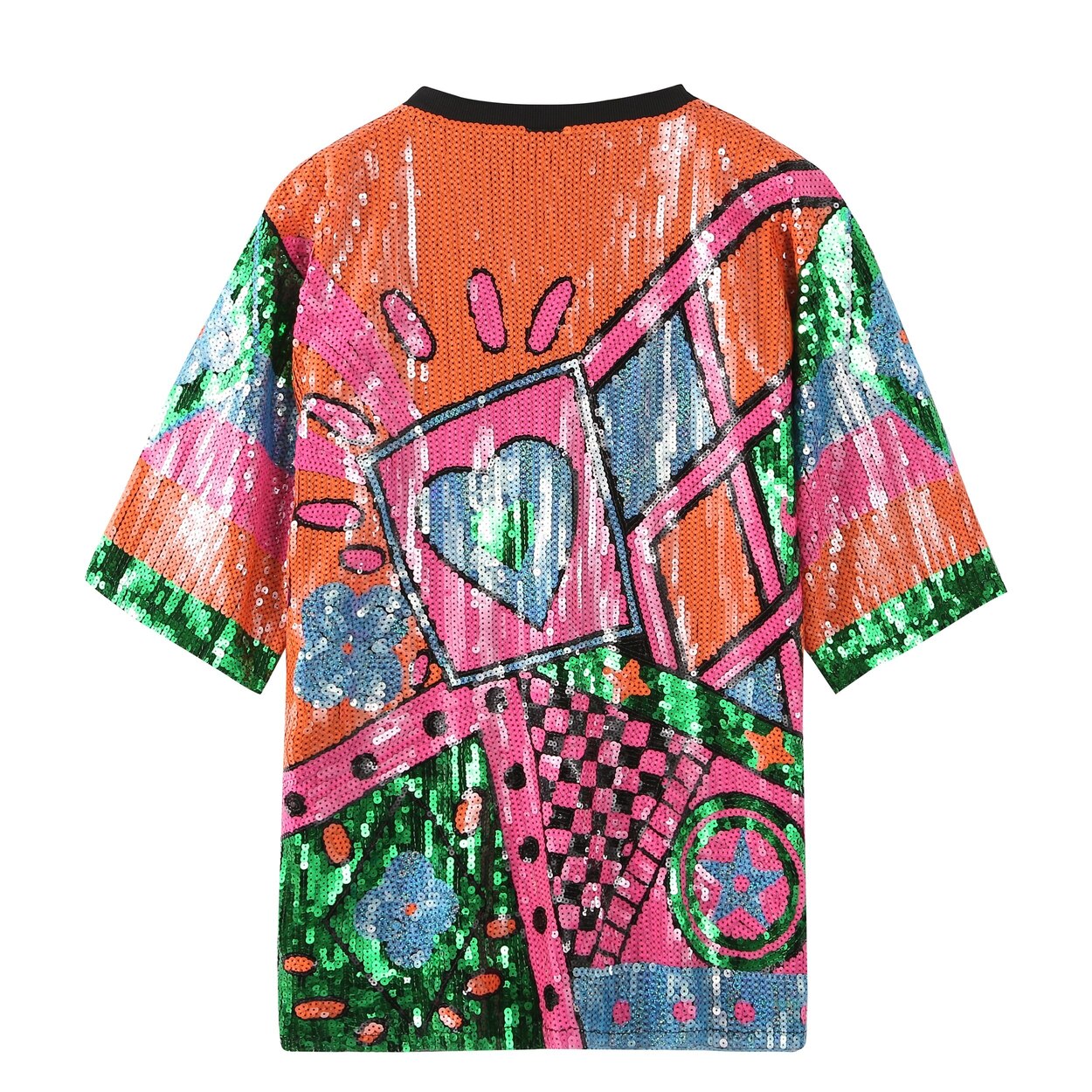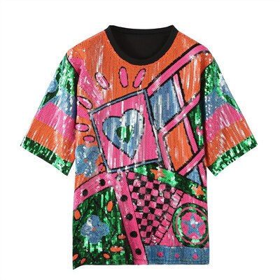 Summer Short Sleeved Geometric Print T-Shirt ONE SIZE