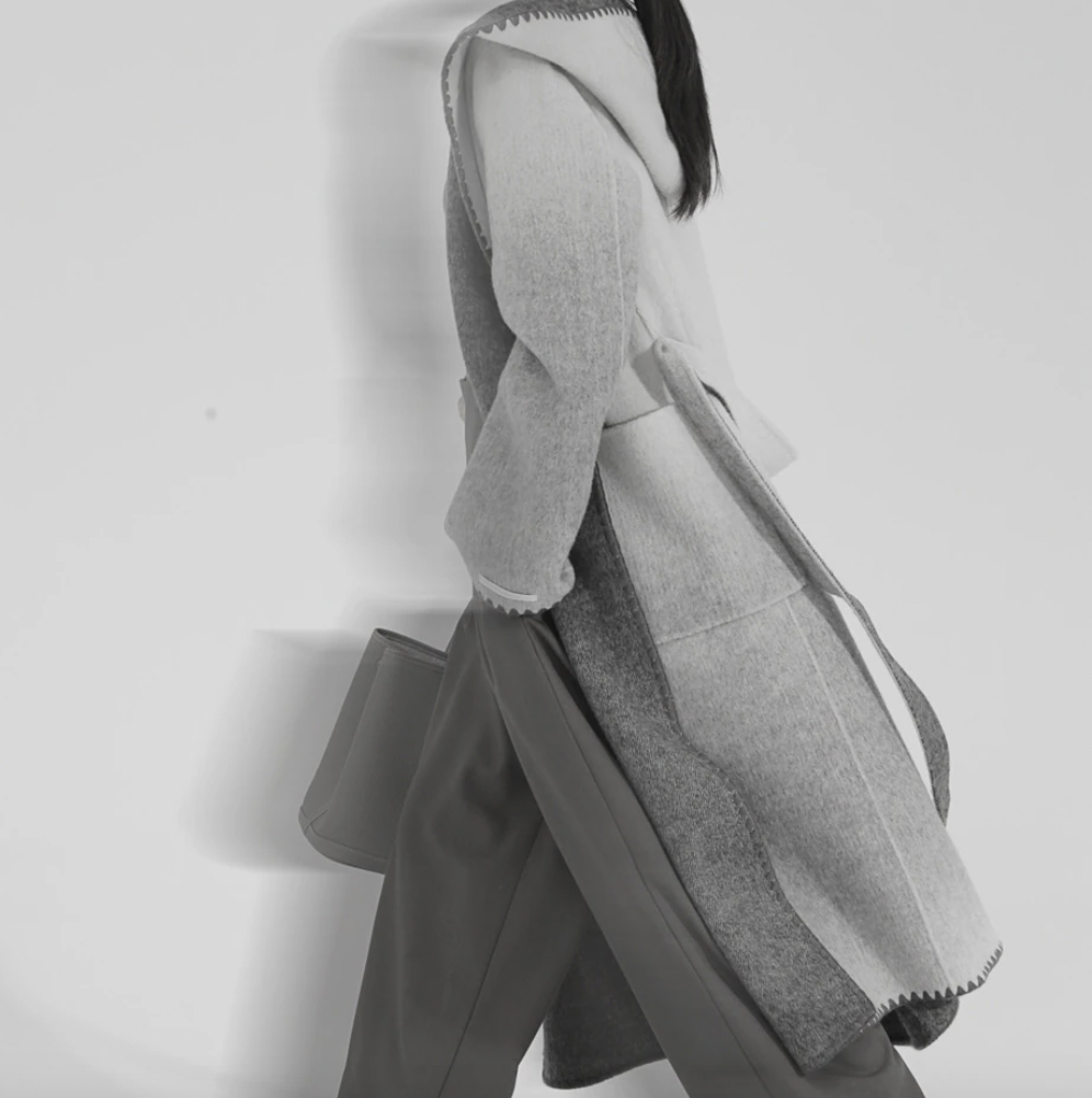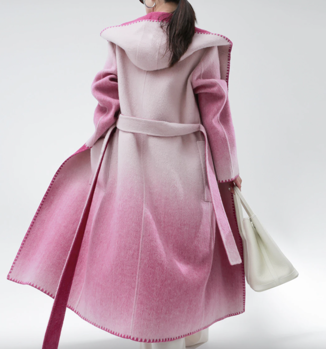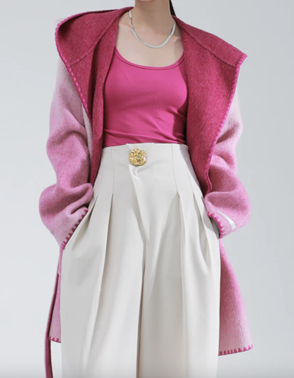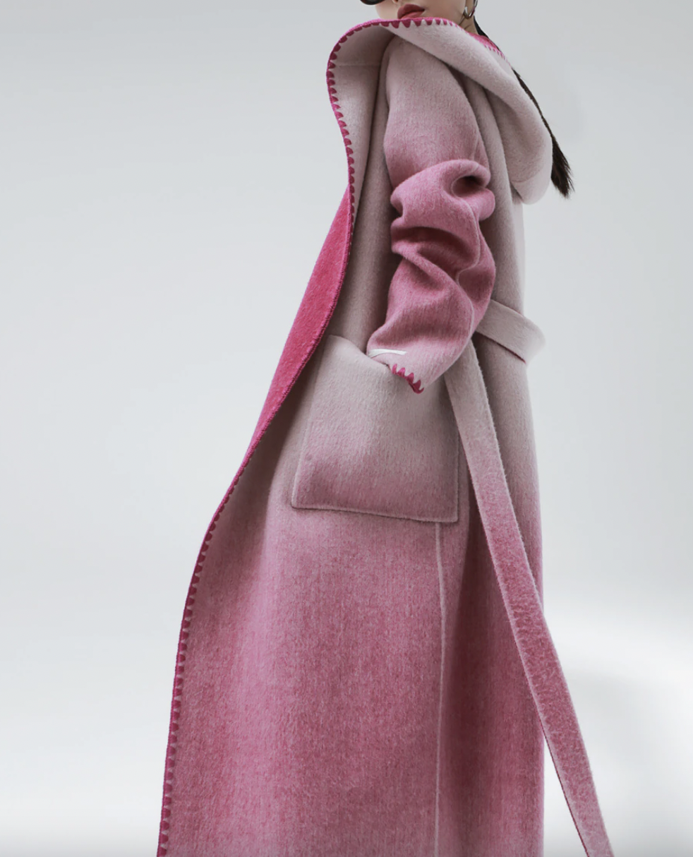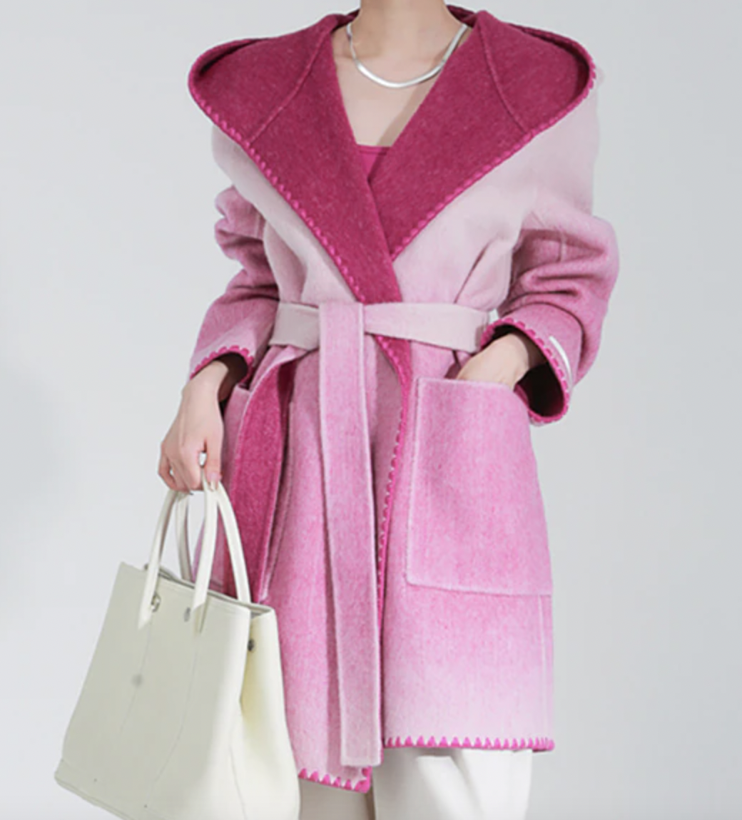 Woolen Coat Hooded Buttonless Straight Two-sided Gradient Mid-calf Overcoat