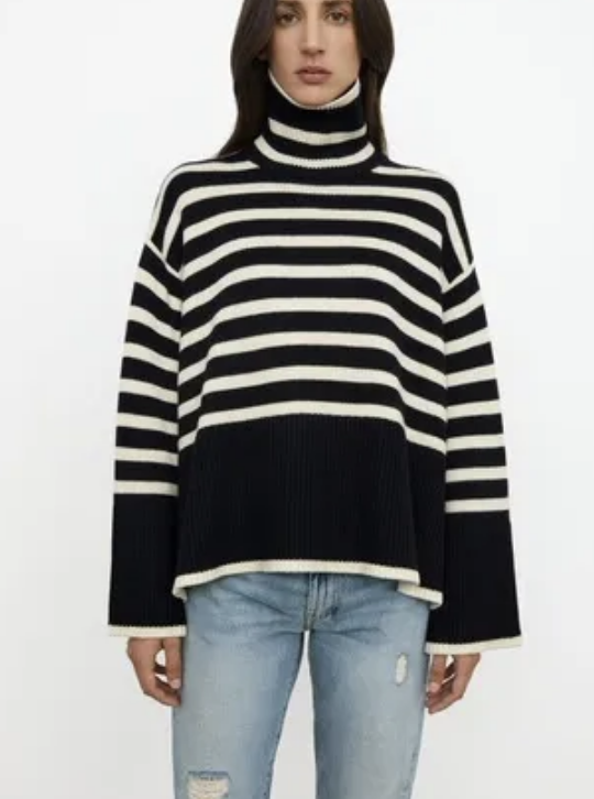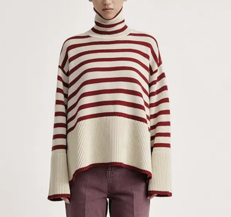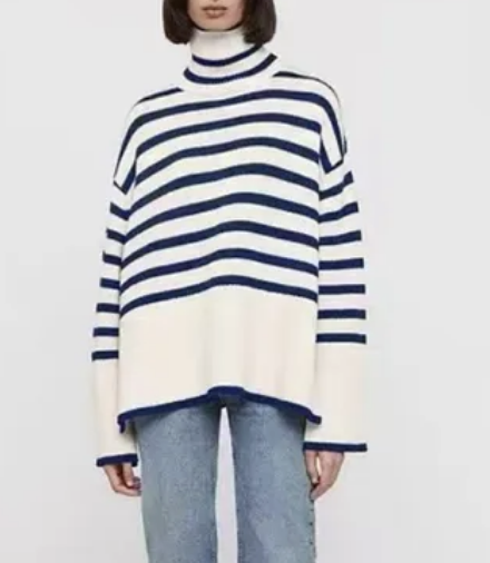 High Neck Wool Classic Stripe Splice Knitwear sweater