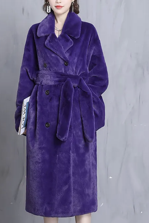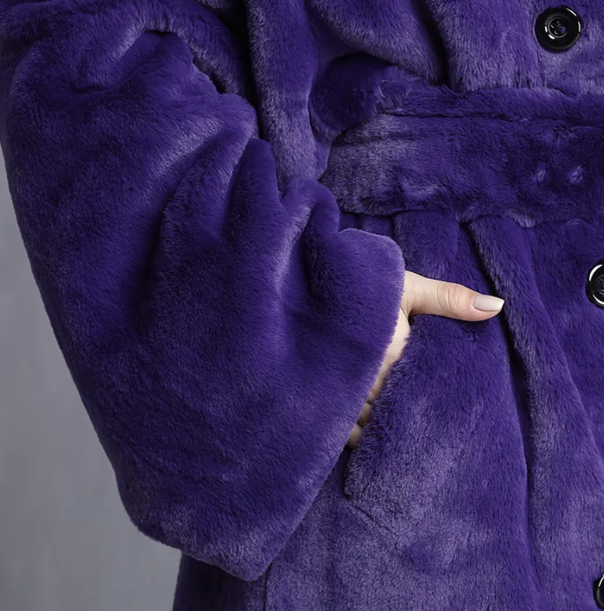 Winter Oversized Purple Warm Fluffy Soft Faux Fur Coat ONE SIZE