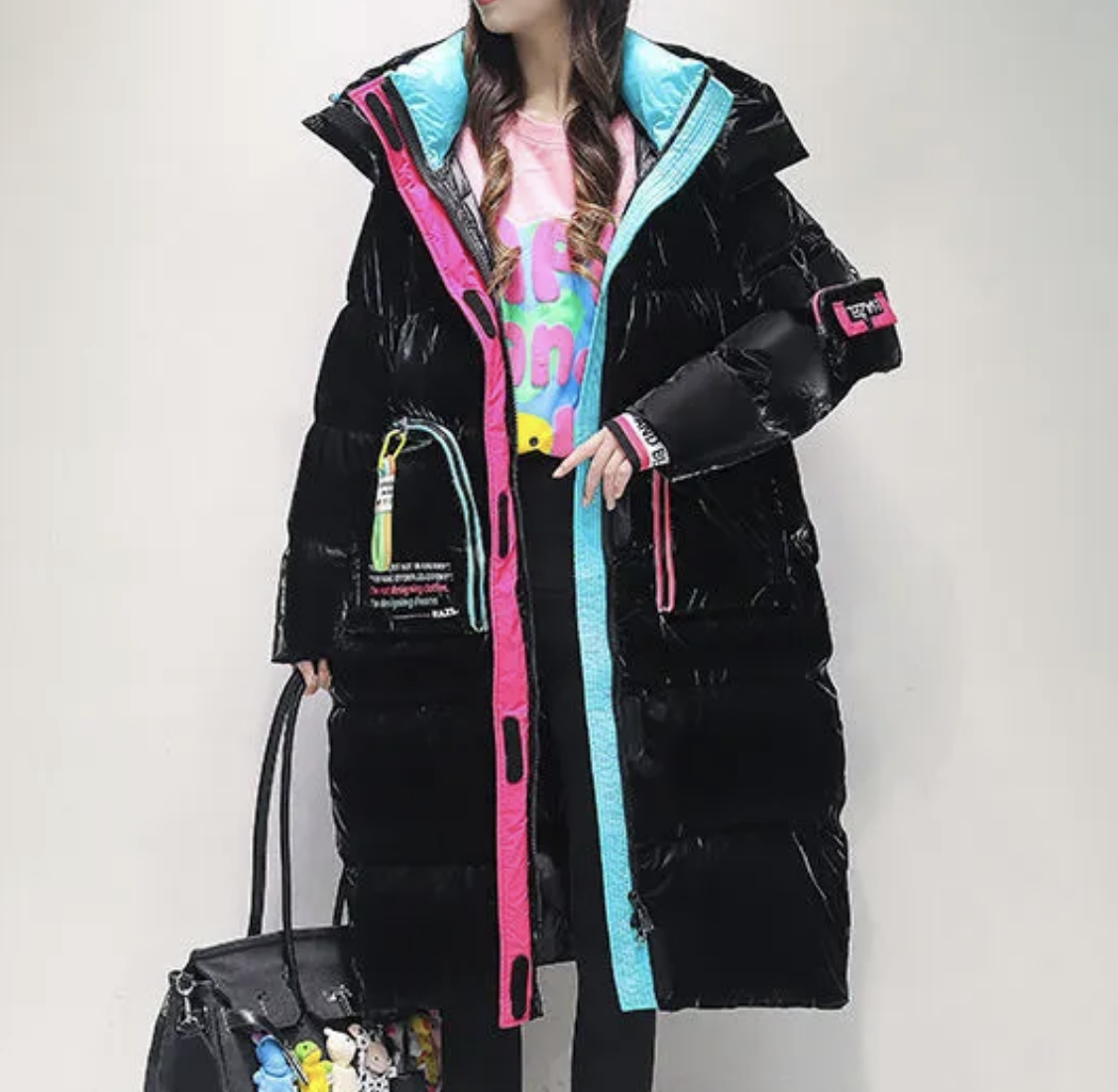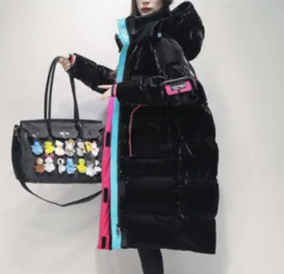 Long Pattern Hooded Overcoat