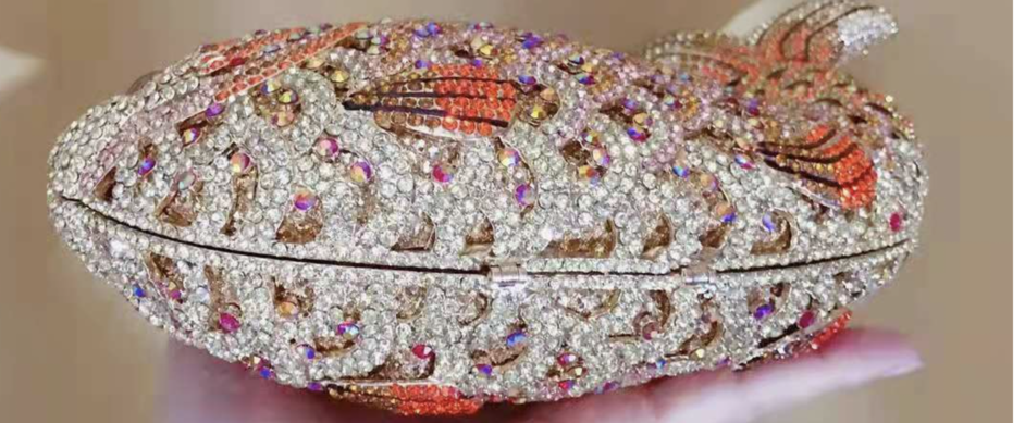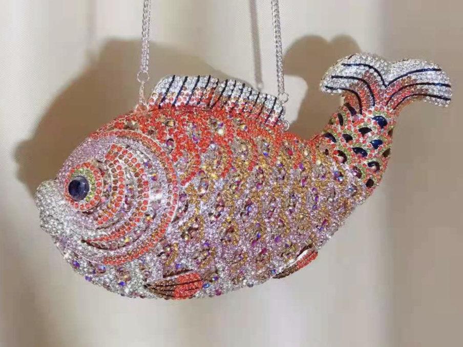 Fish Shape Women rhinestones Purse Evening beaded cz clutch bag