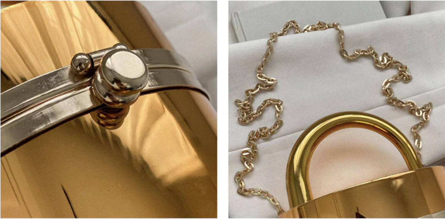 Designer Clutch Bag Gold Silver PVC Box Design