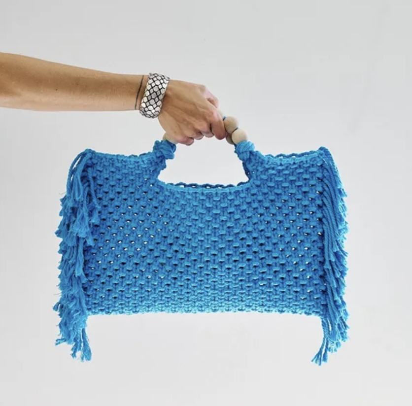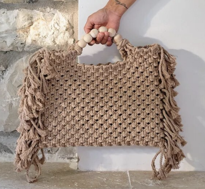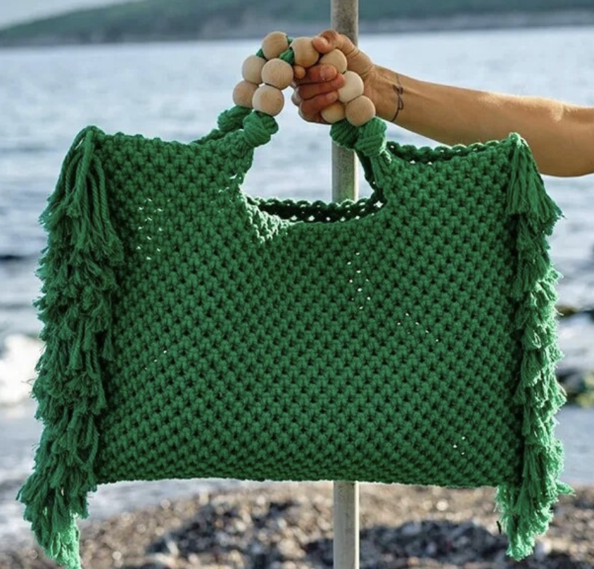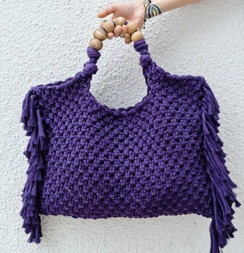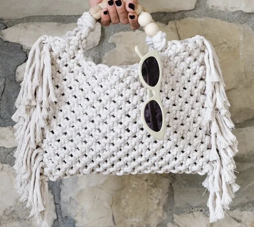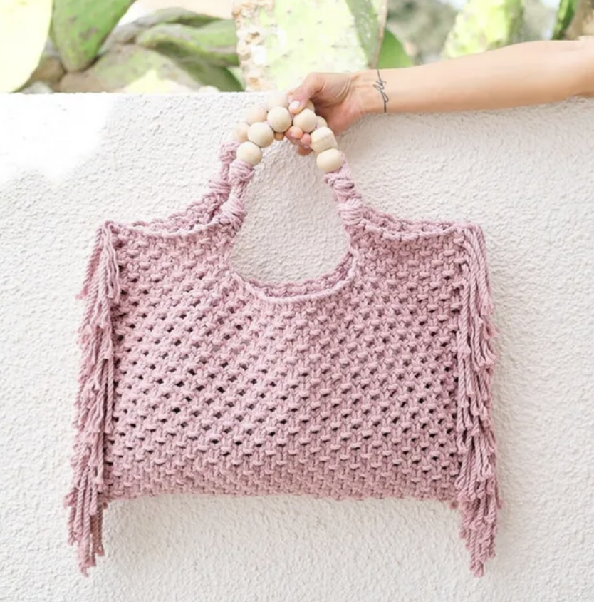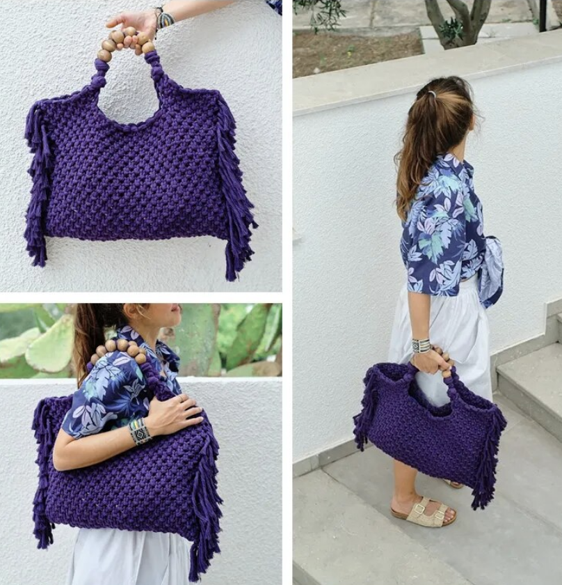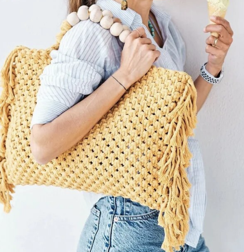 Crochet boho chic vacation fringe beach bag