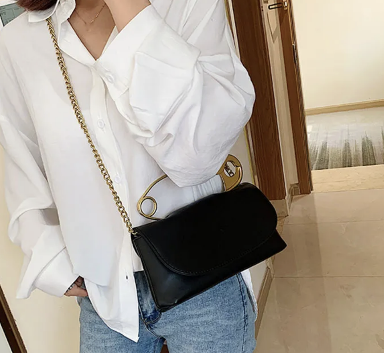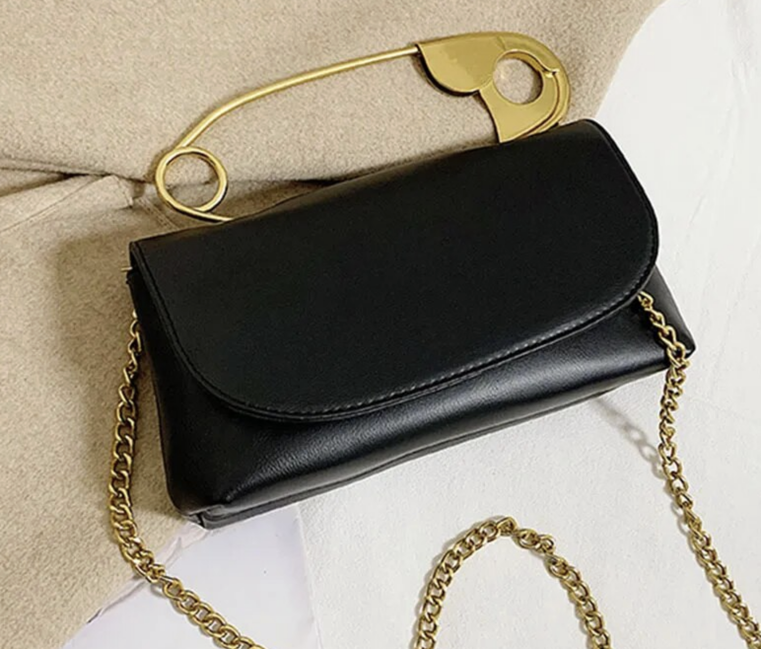 Safety Pin Women Designer Chains flap Shoulder Bag