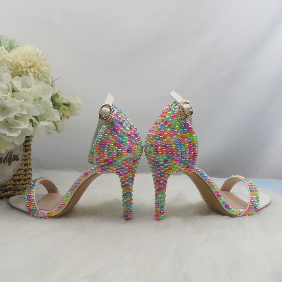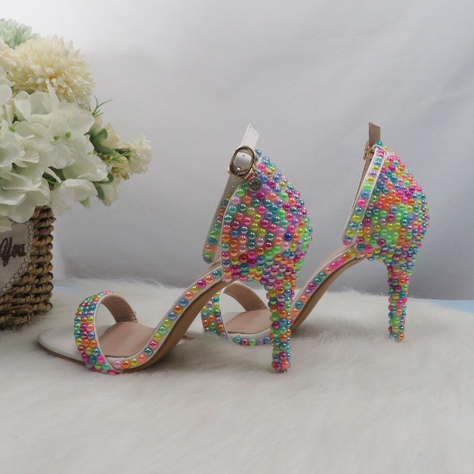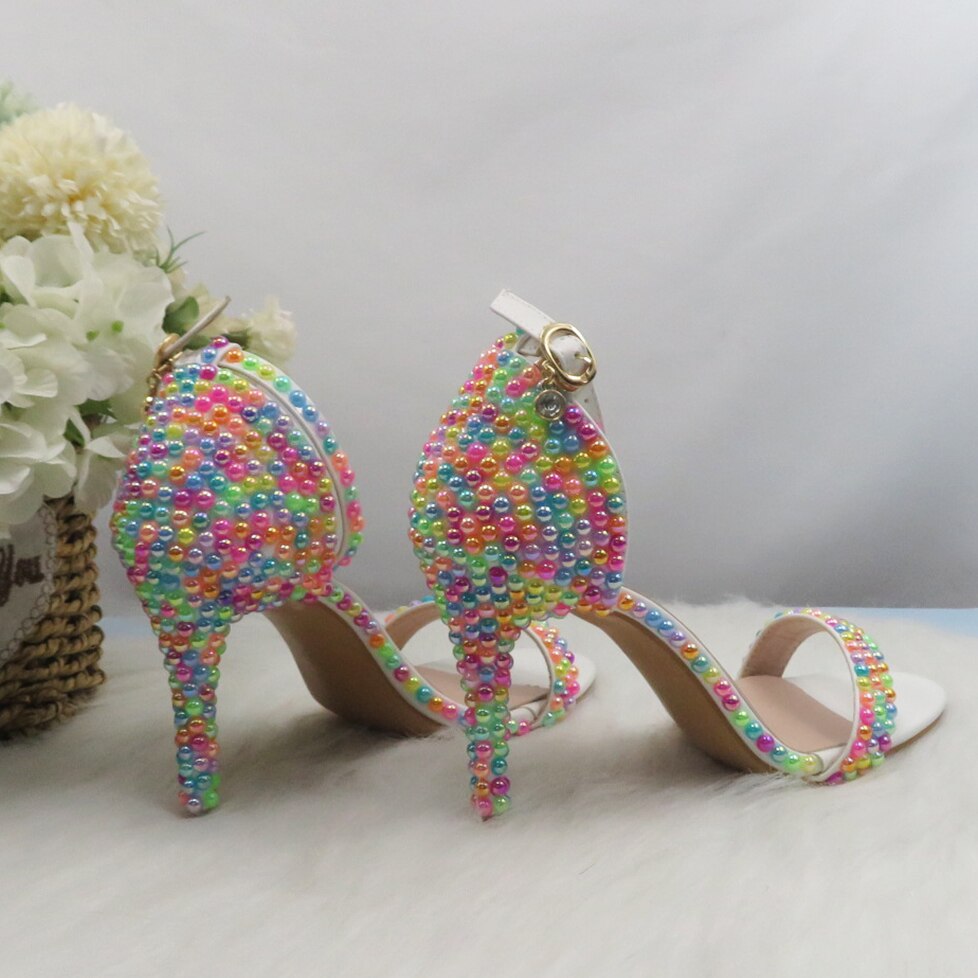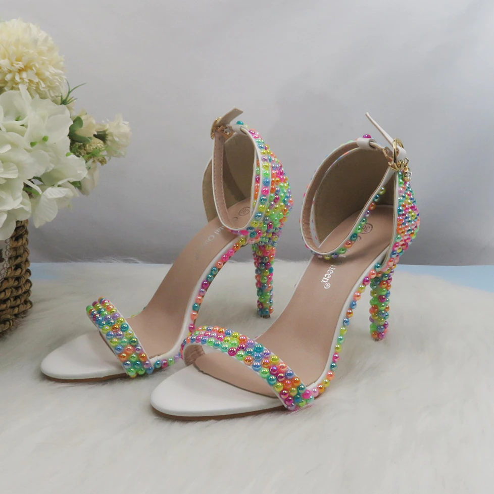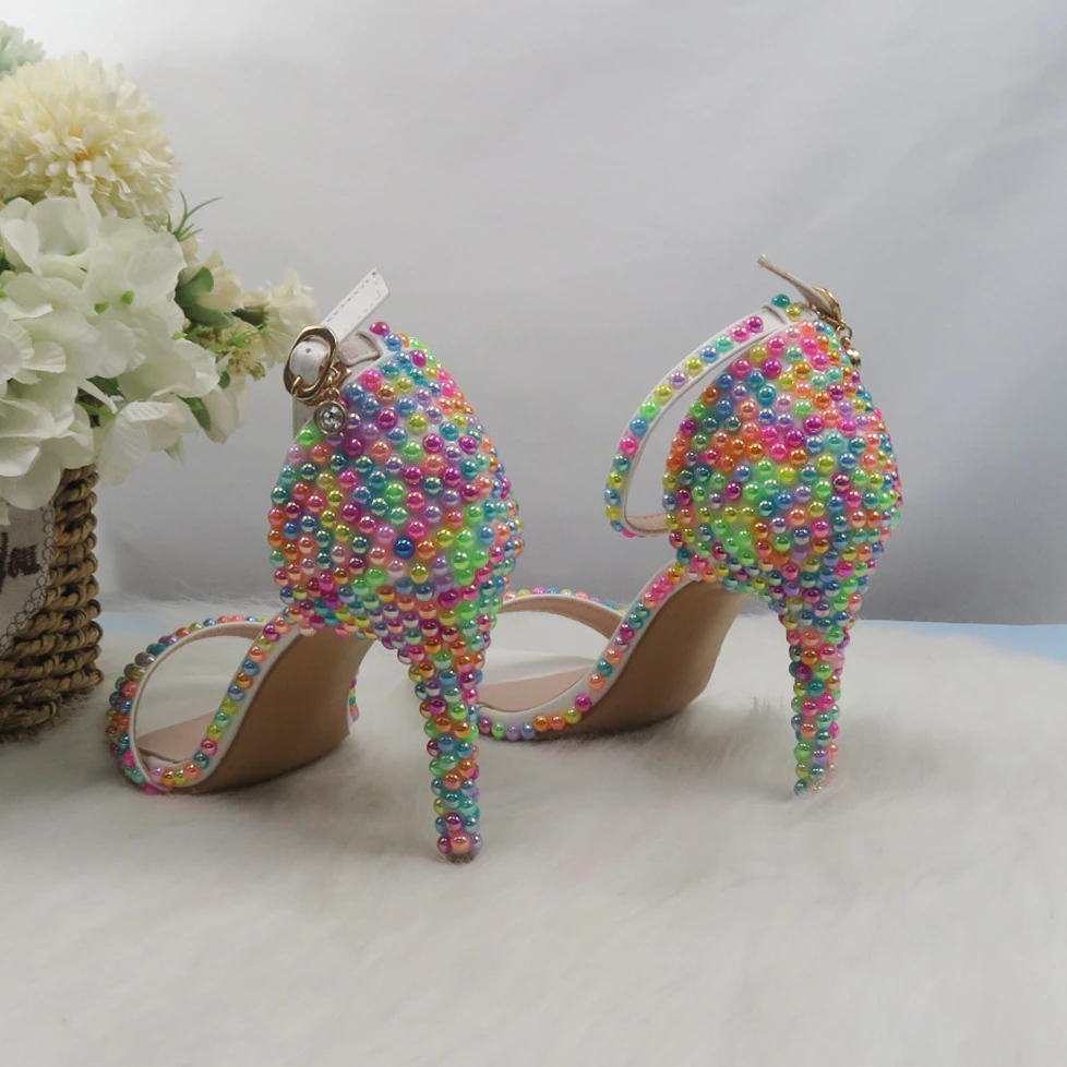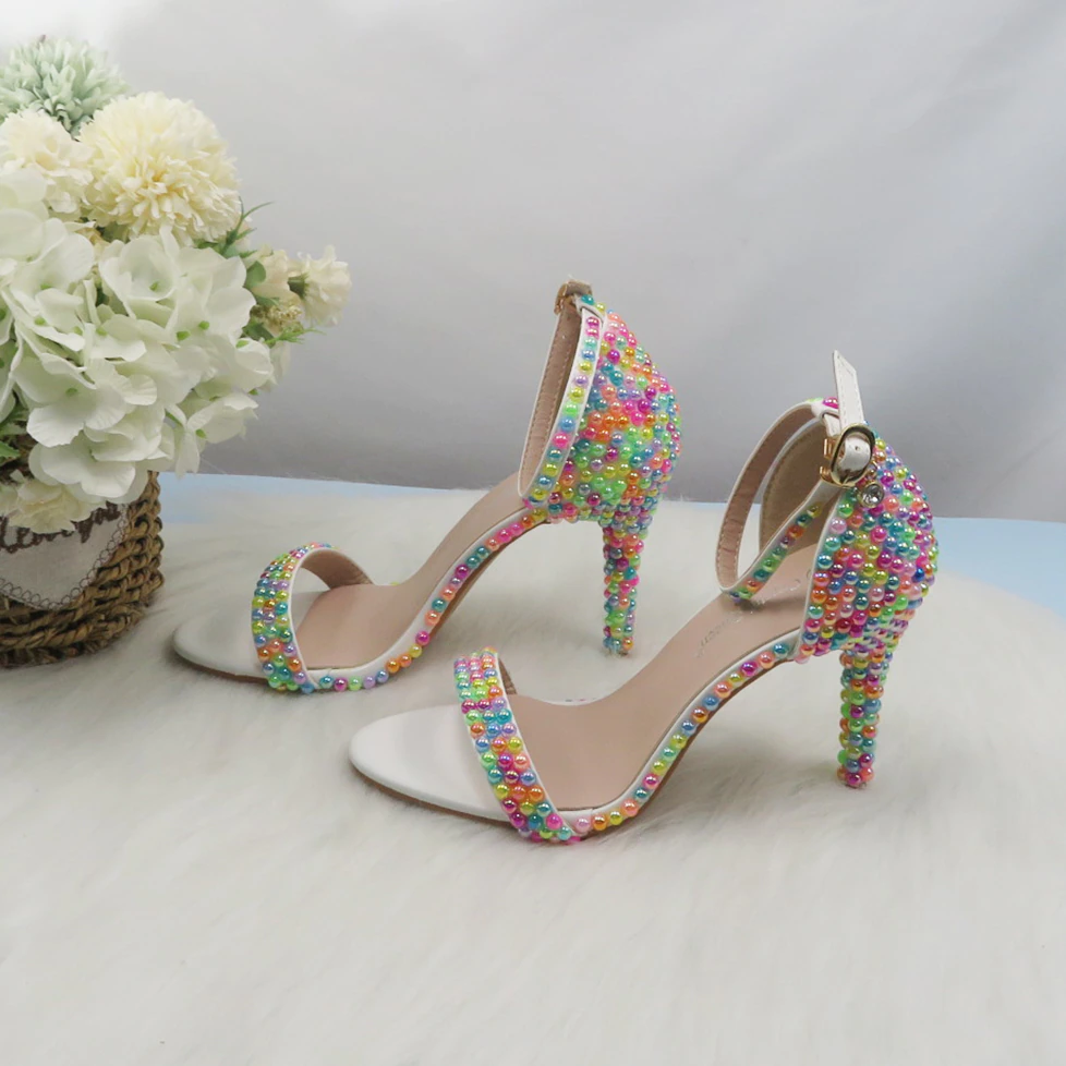 2021 New Arrival Summer Female Bridal Sandals Pearl ankle strap wedding shoes woman Fashion Multicolored Thin Heel Buckle Sandal
