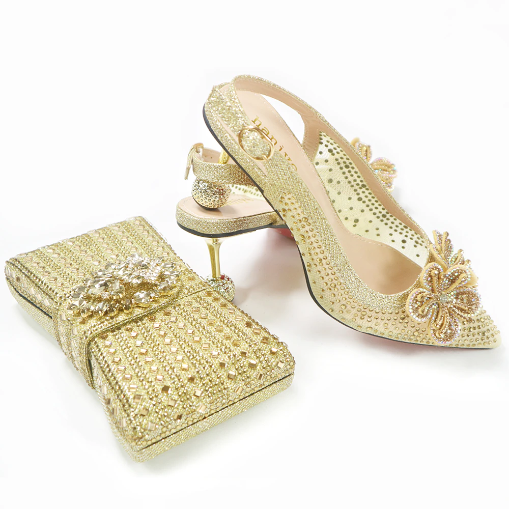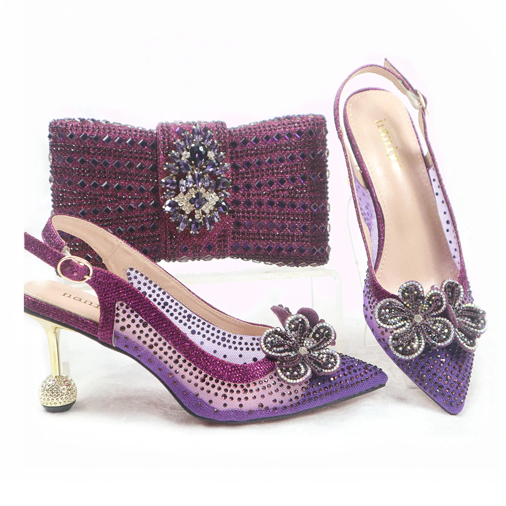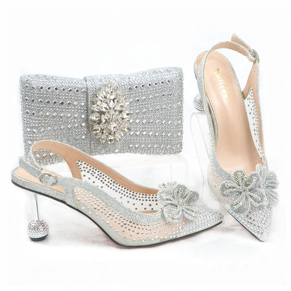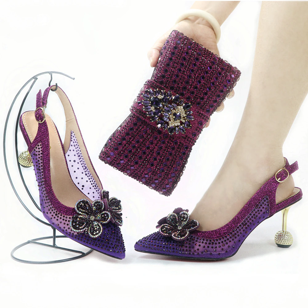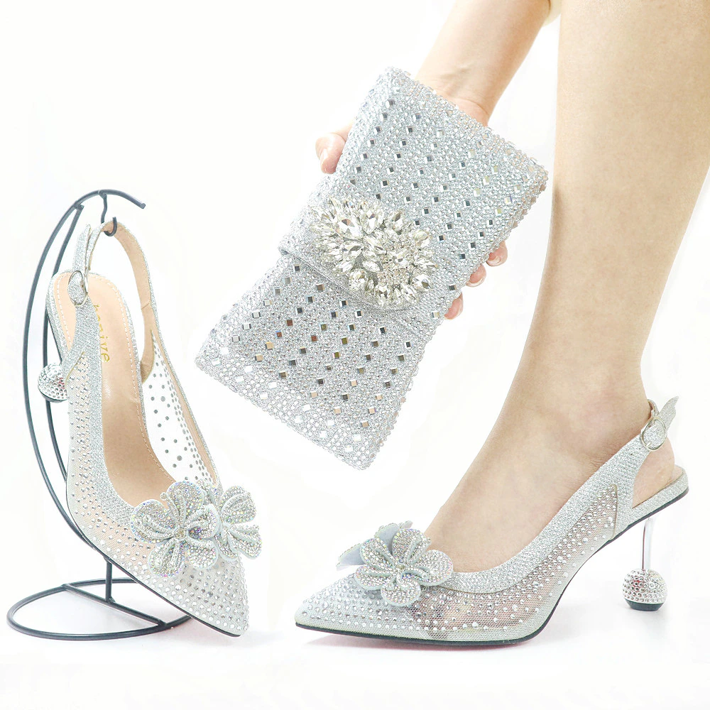 Fashionable New Design 2106-8 Italian Ladies Shoes and Bag to Match Classics Style Decorate with Rhinestone for Wedding Party