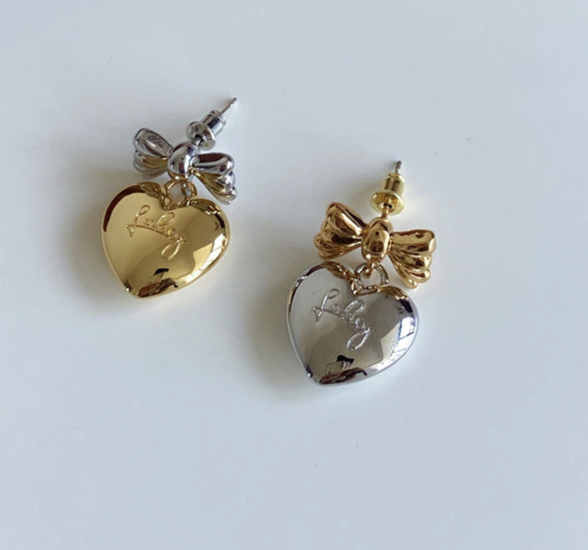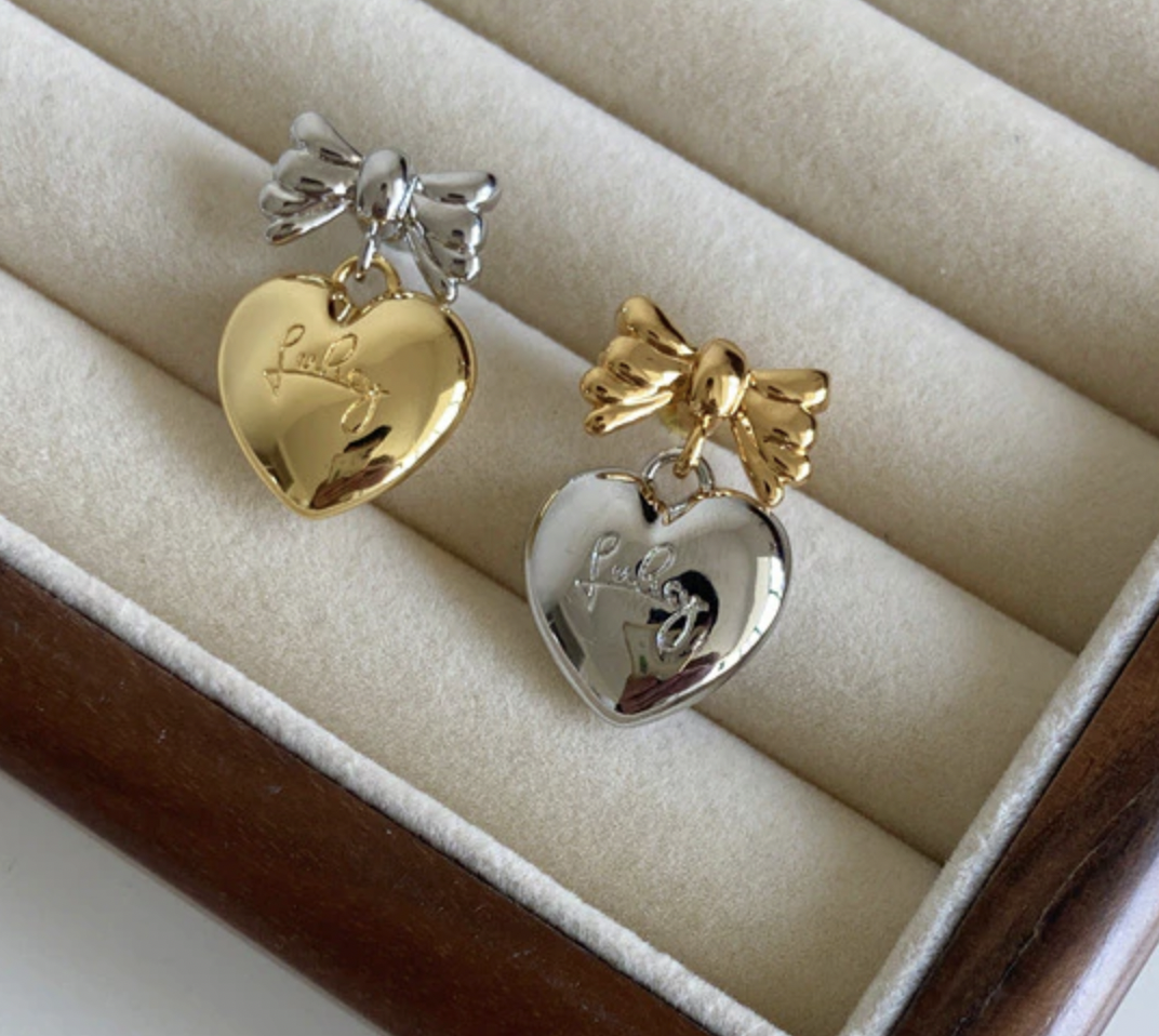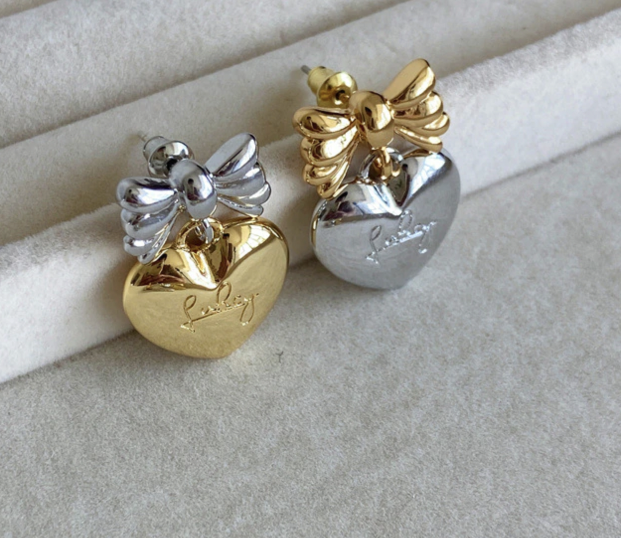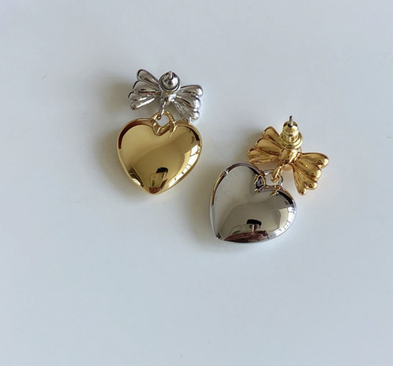Two ones bowknot heart stud earrings for women cute kawaii earrings for teenage girls y2k 2000s fashion designer jewelry