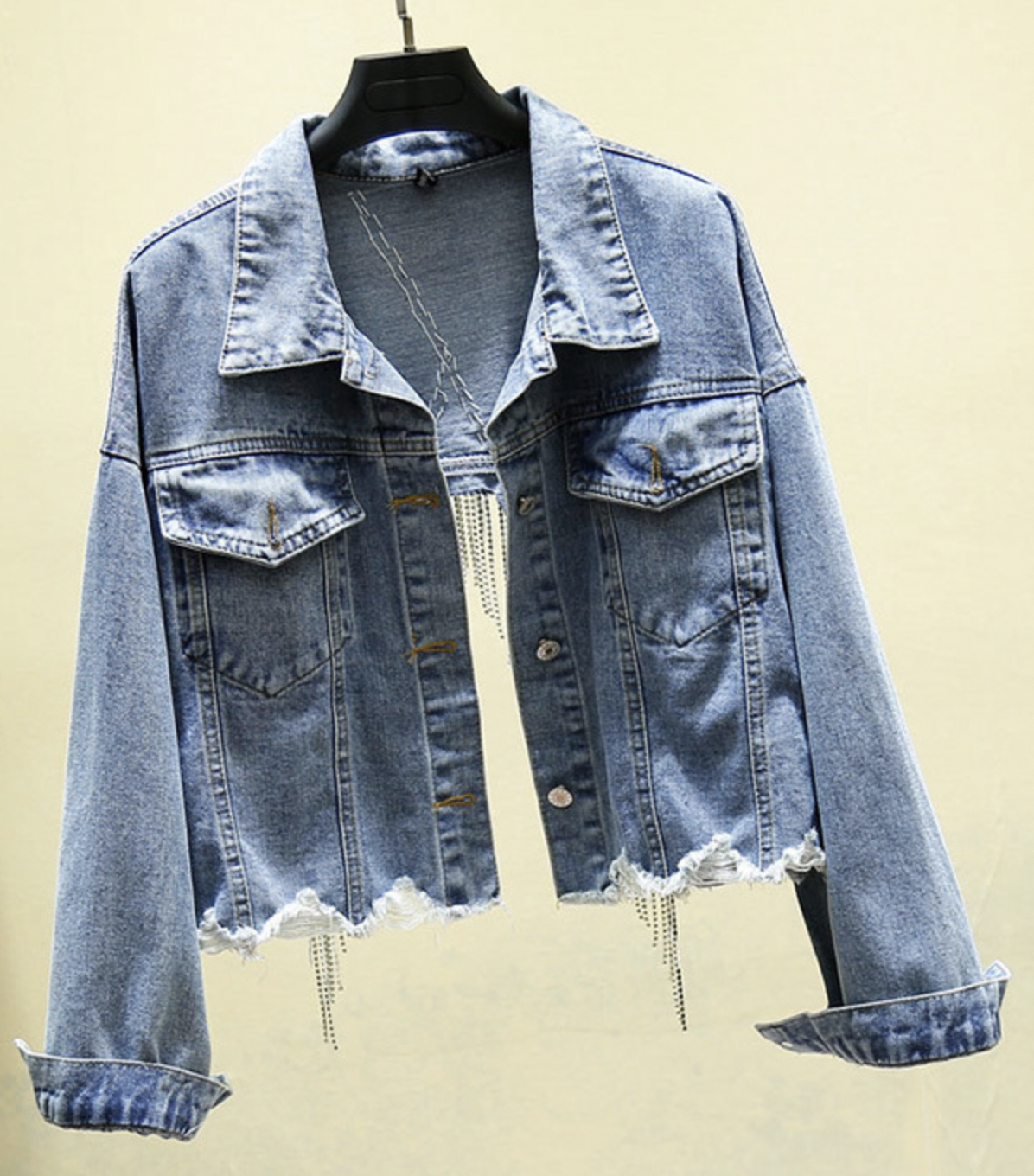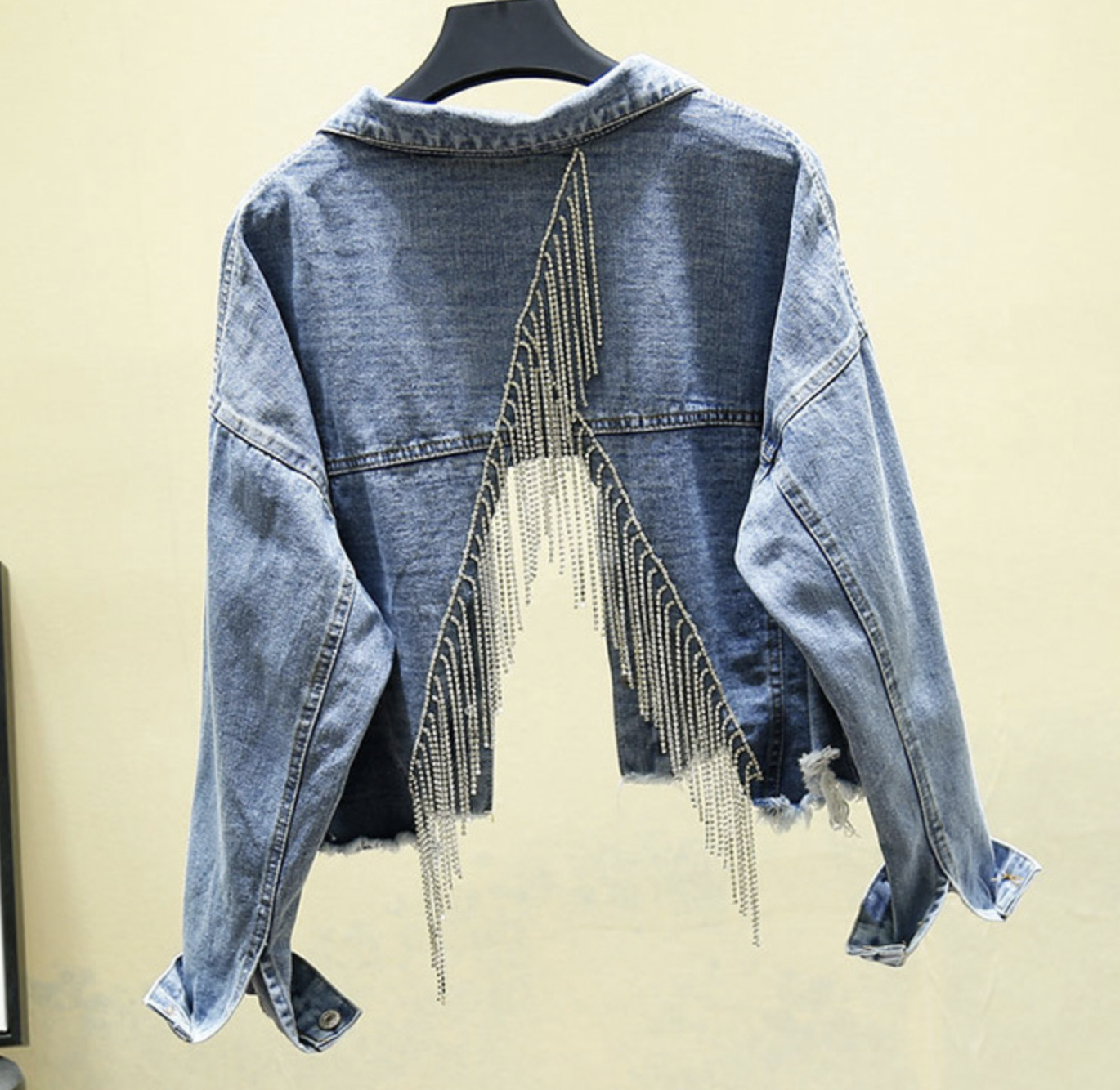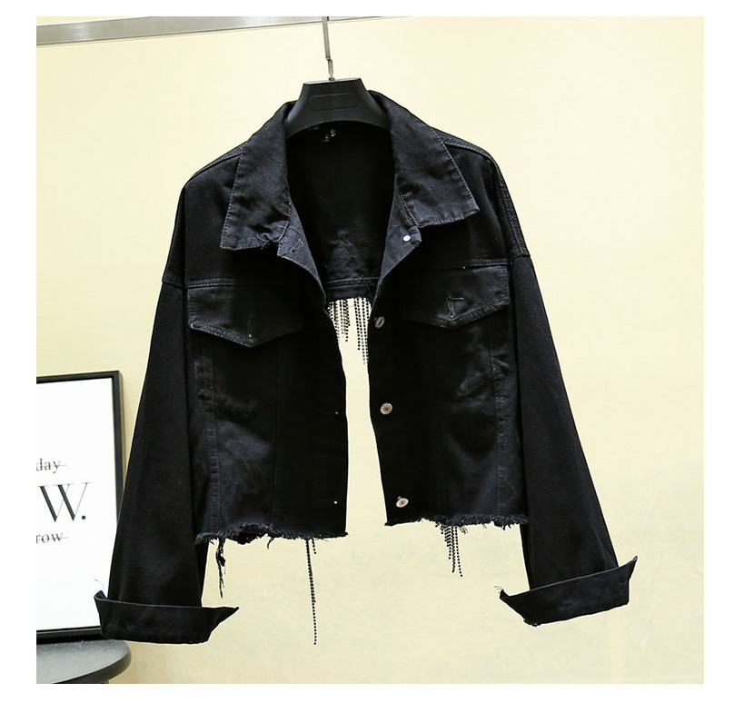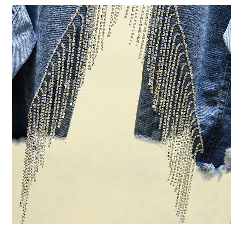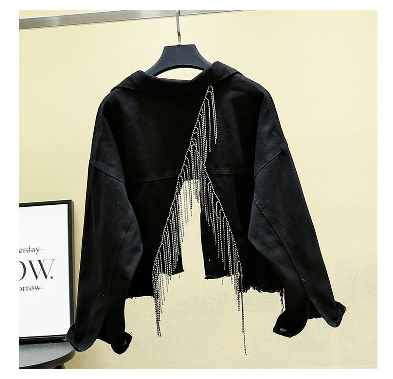 Spring Fall Women's Blue Denim Jacket Female Y2k Heavy Tassel Back Slit Openwork Gray Short Coat Jeans Jacket Outwear Indie
