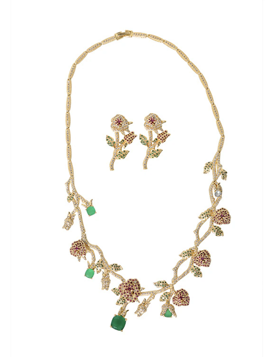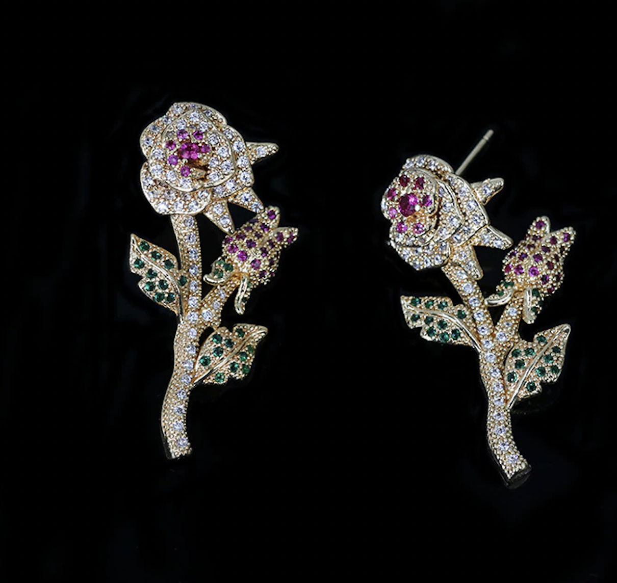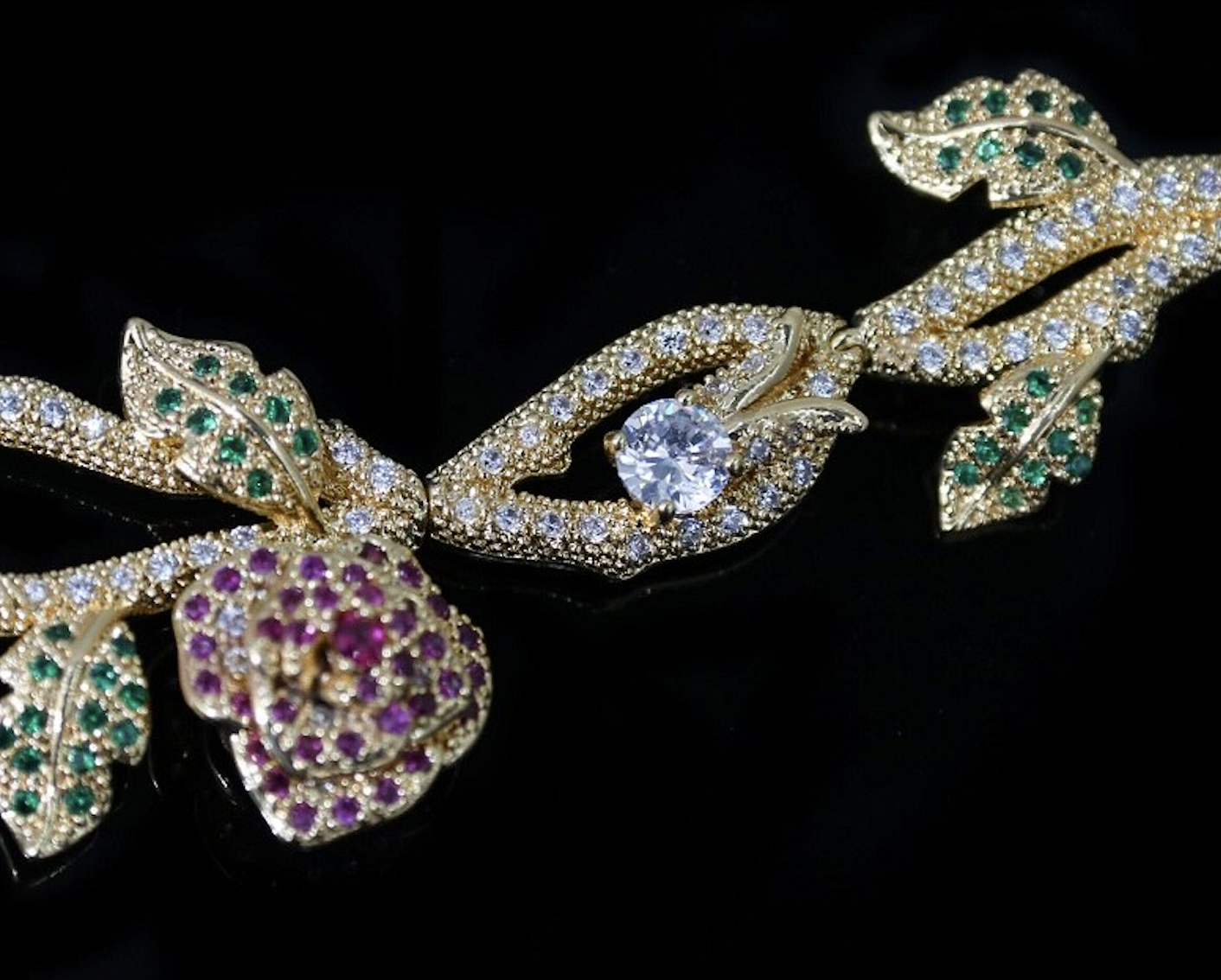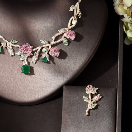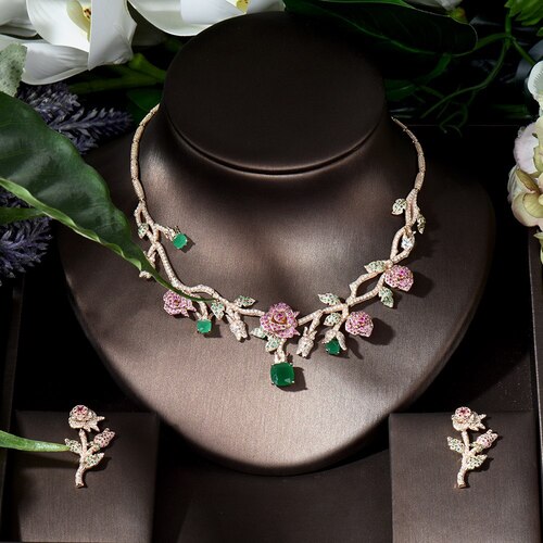 Rose Flower Bridal Necklace Jewelry Sets Luxury CZ